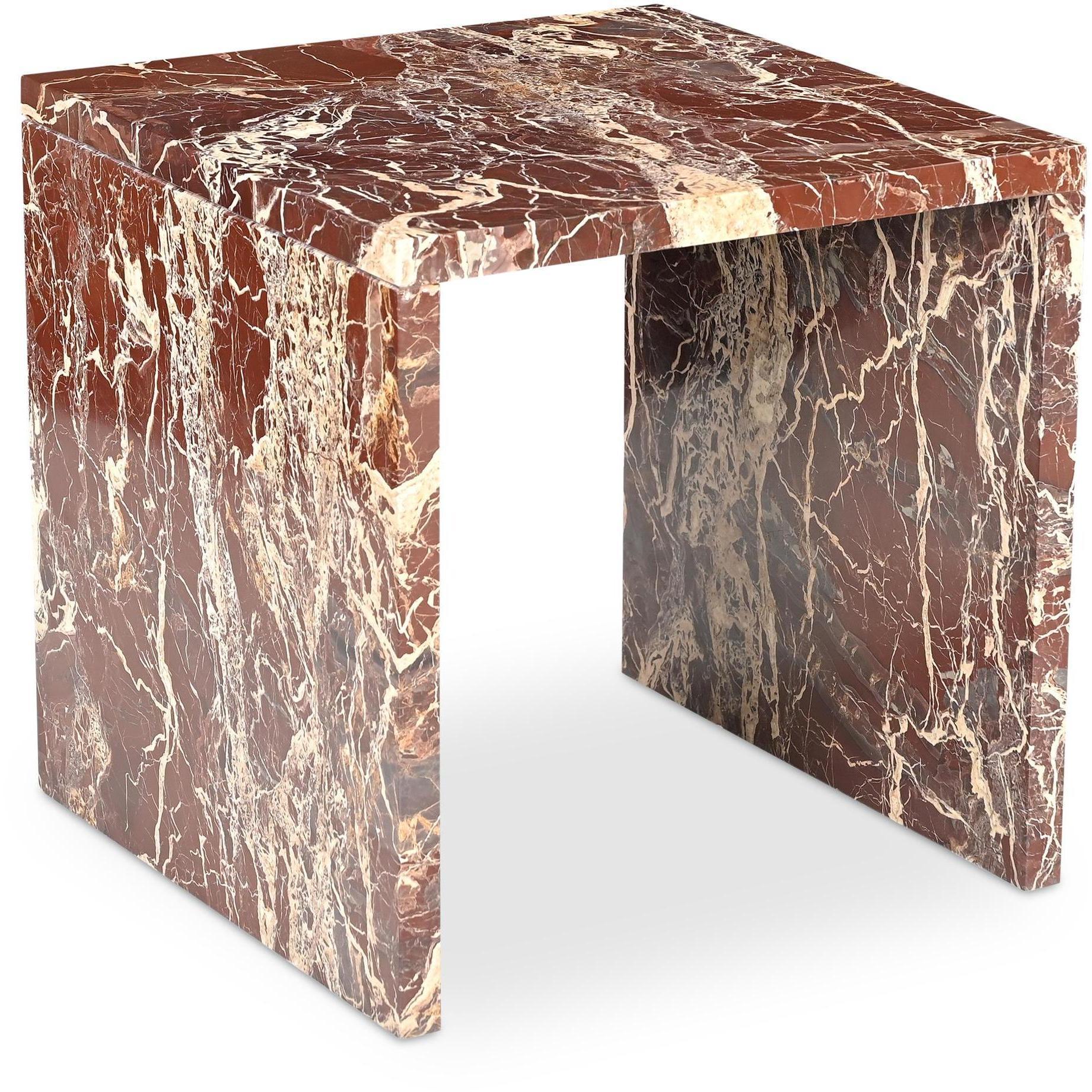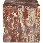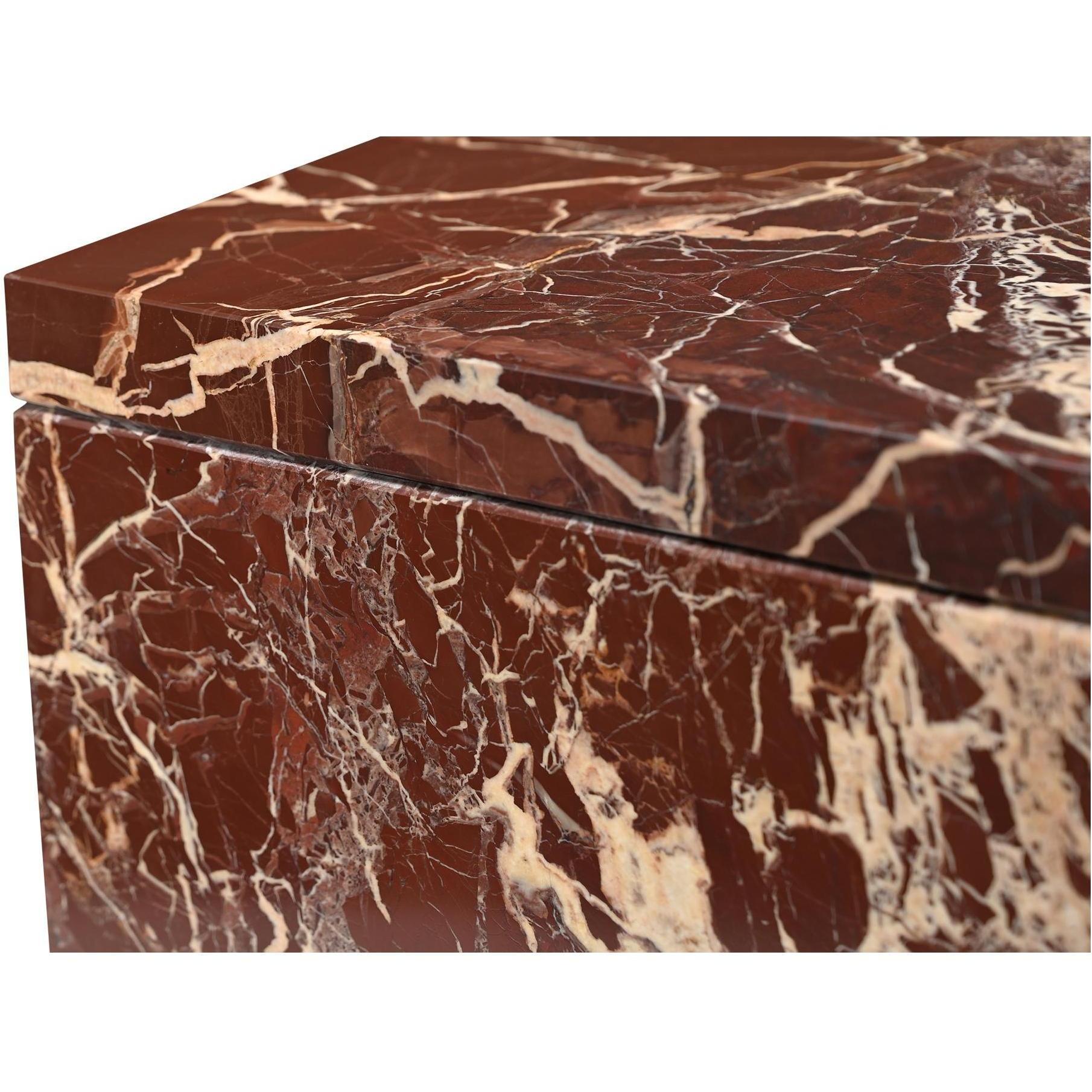 The bold simplicity of the waterfall design speaks volumes with the Rosa accent table’s versatility. Crafted from beautiful Rosso Levanto marble, renowned for its vibrant red hue and striking gold veining, each piece is singularly impactful. This piece commands attention as a statement of natural elegance.