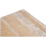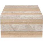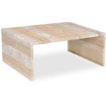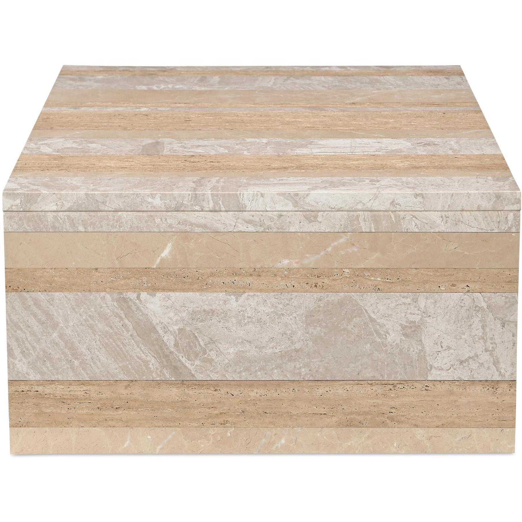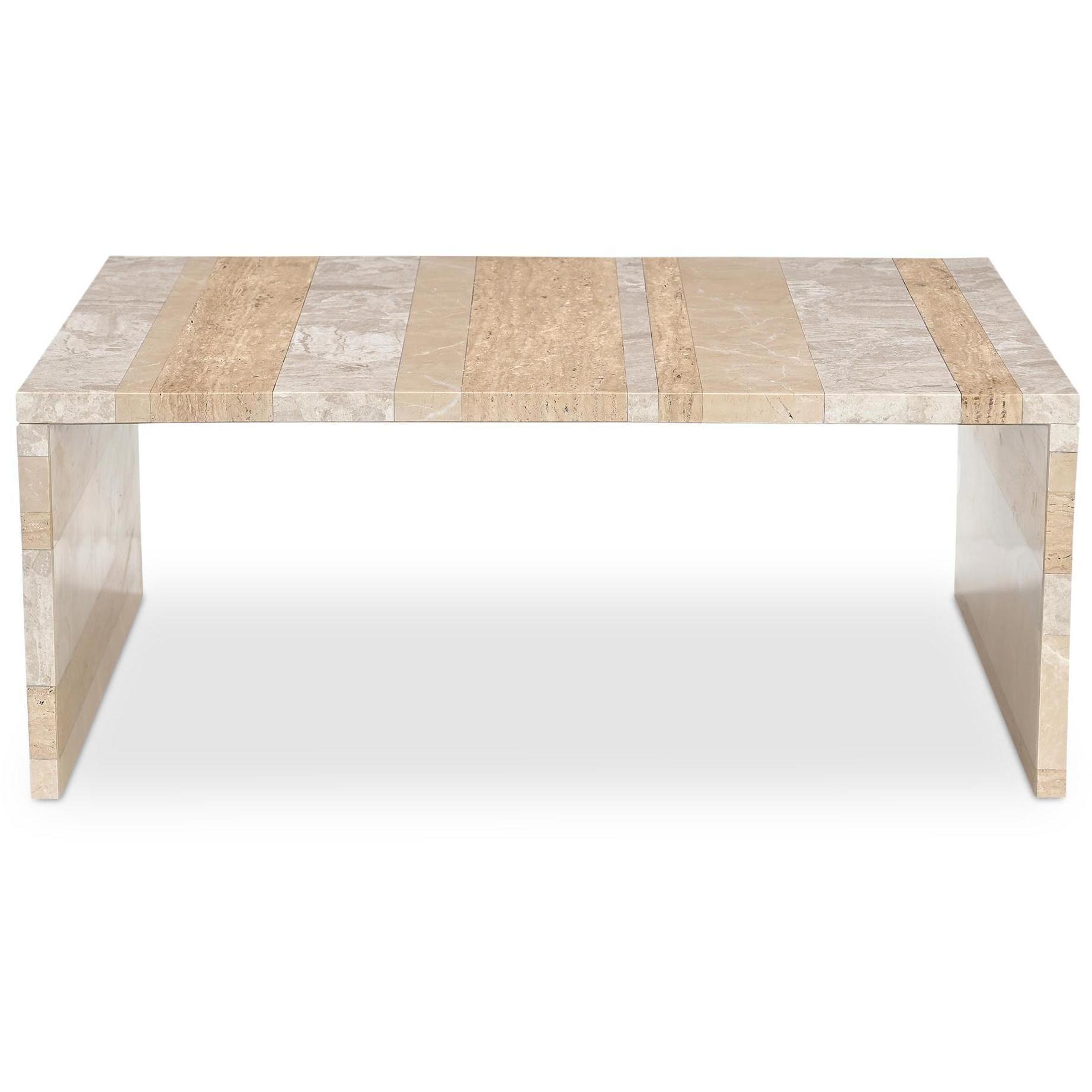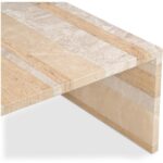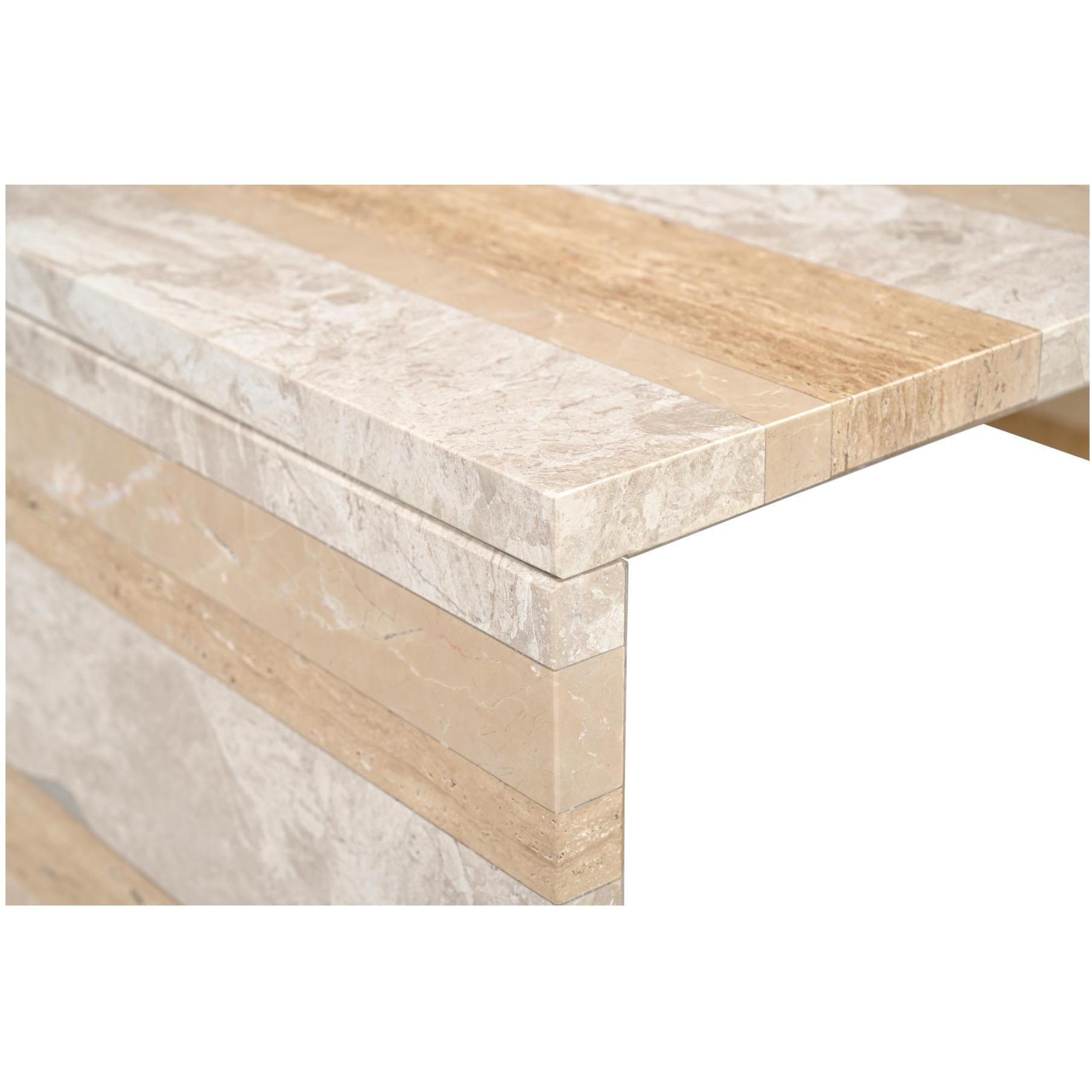 The bold simplicity of the waterfall design speaks volumes with the Rosa coffee table’s versatility. The table is singularly impactful and crafted from beautiful sections of different types of neutral-toned marble with a generous scale and thickness to create a substantial look. This piece commands attention as a statement of natural elegance.