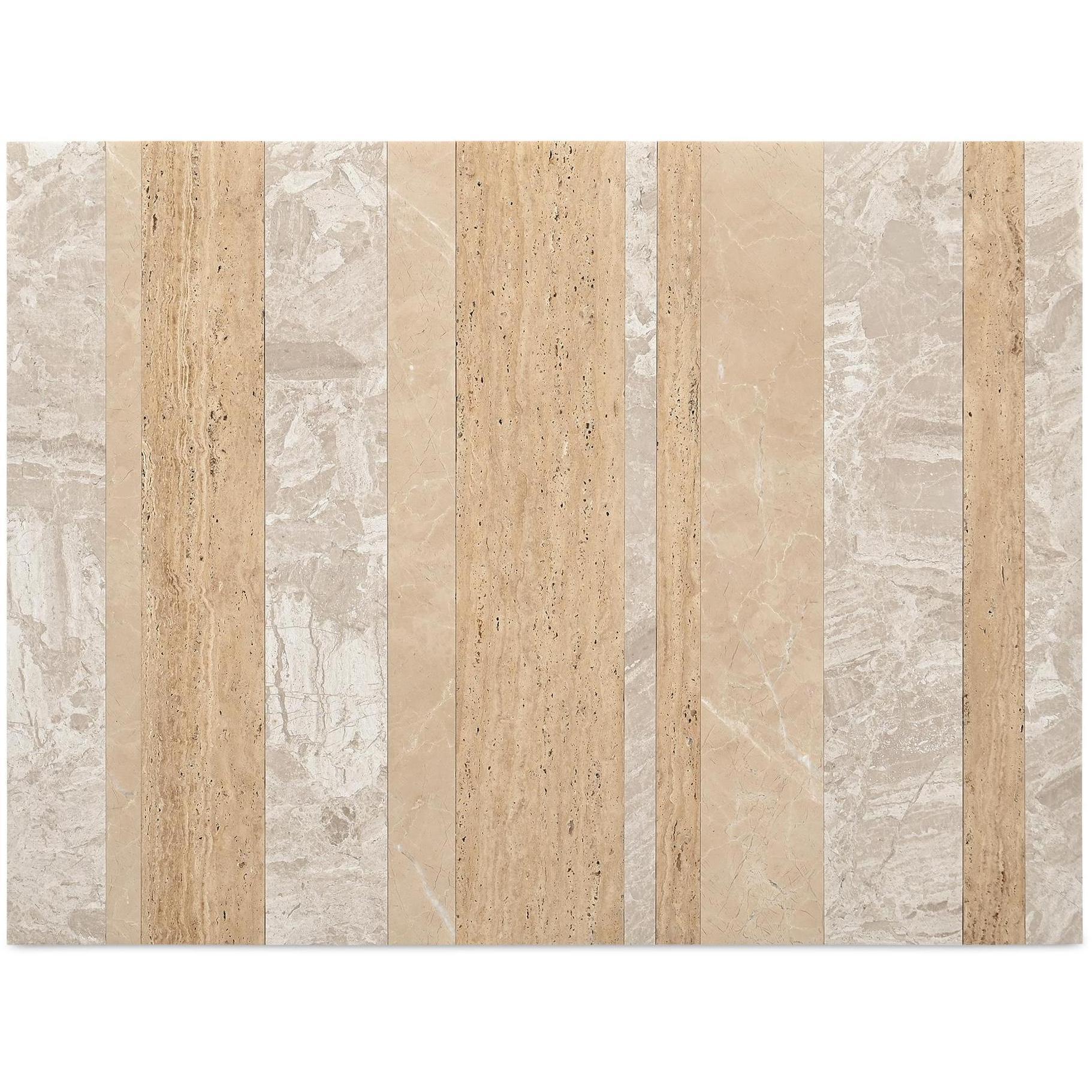 - Crafted from Italian beige travertine, panther stone & grey barbarry marble & iron