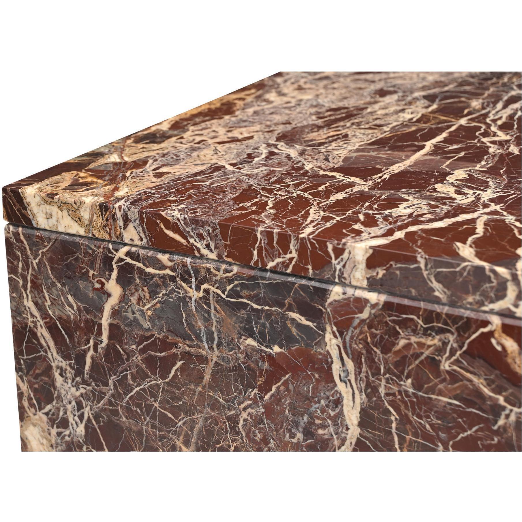 - Crafted from Rosso Levante marble & iron