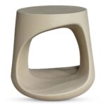 The blend of style and function into sculptural seating with an adaptable design to be used as either a stool or side table. This monolithic indoor or outdoor stool design is a work of art, ready to blend into any organic garden arrangement or to place beside the softness of a sofa as an end table. Made of high-quality concrete and fiber mix to provide comfortable voguish seating for a modern interior.