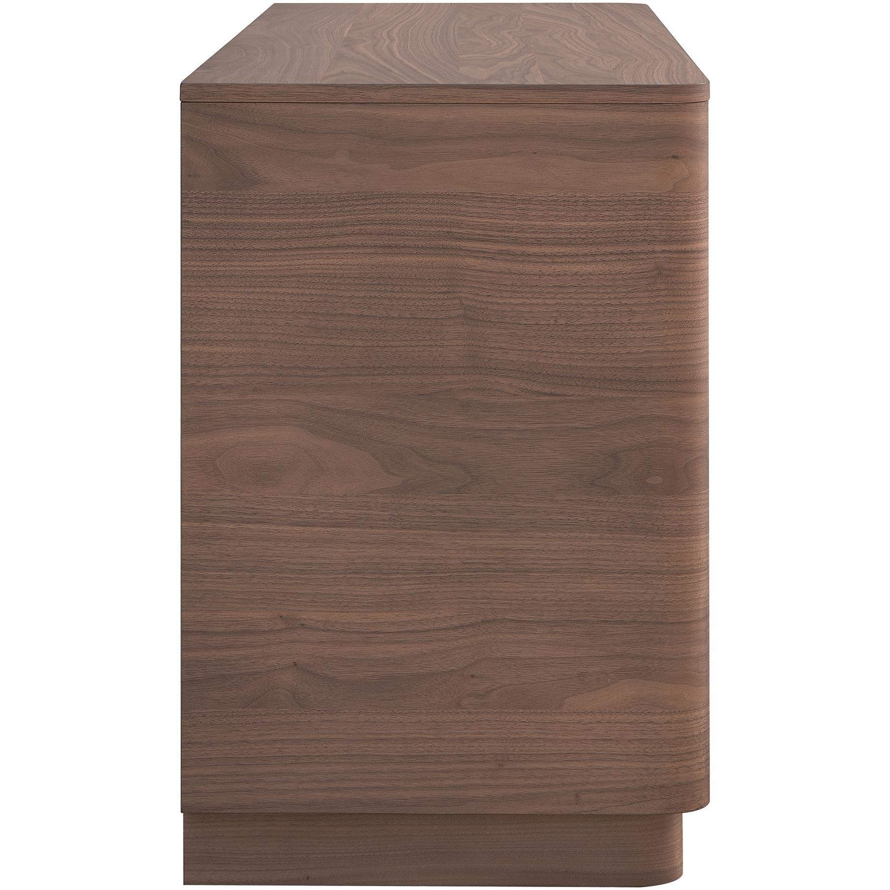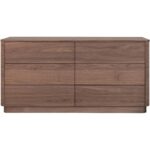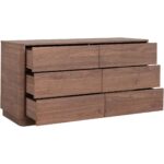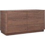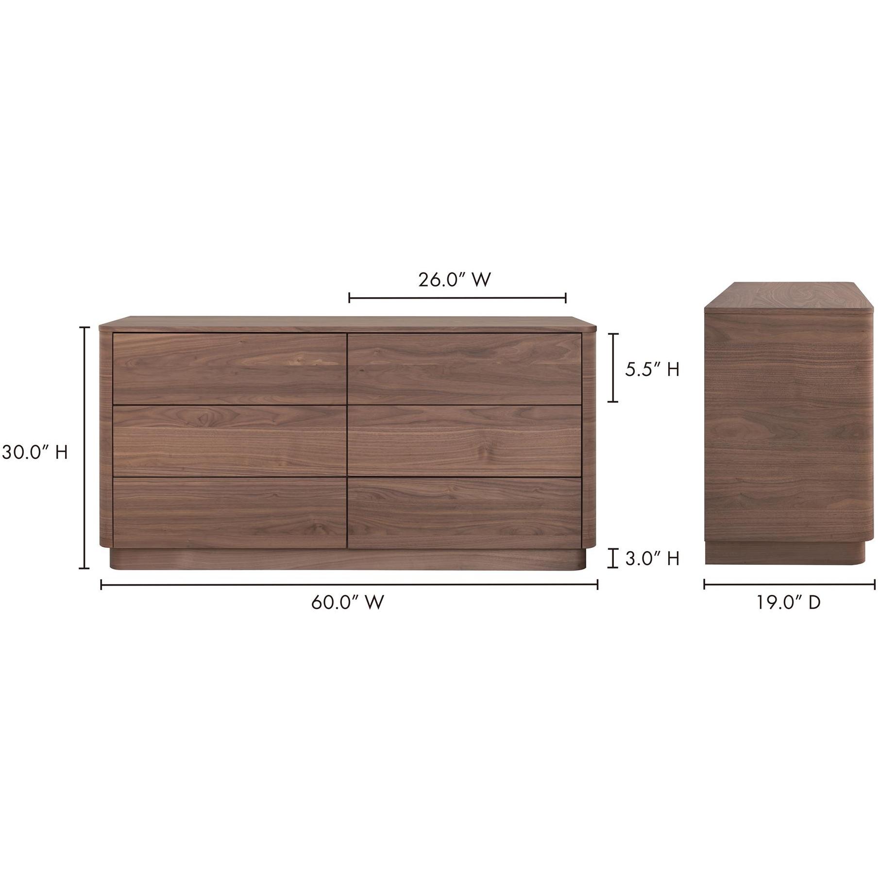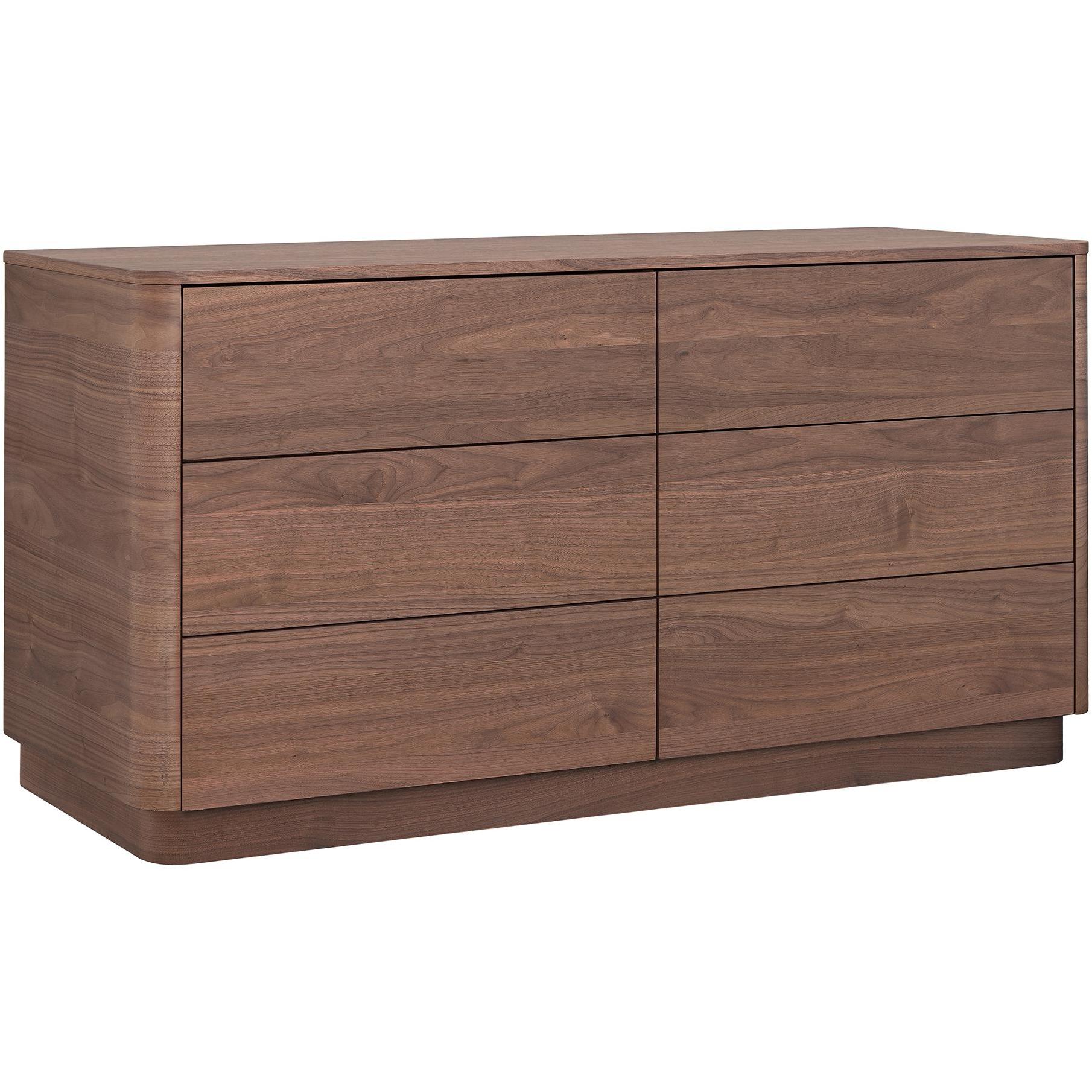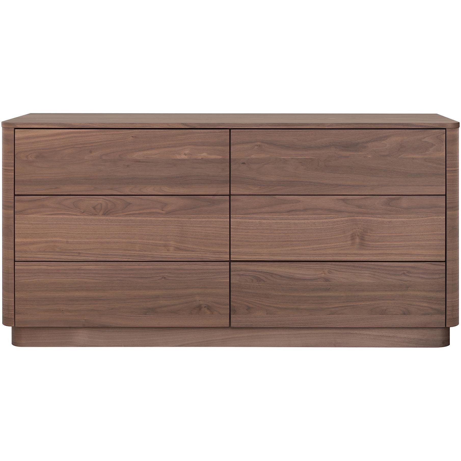 Six drawers, zero clutter, all style. The Round Off dresser pairs softened corners with warm walnut tones, bringing calm design and everyday function into the bedroom. Its low, grounded form feels modern yet approachable, while six drawers glide smoothly on soft-close hardware to keep clothing neatly contained. Finished in walnut veneer with a rubberwood base, this dresser delivers timeless design and practical storage in one piece.