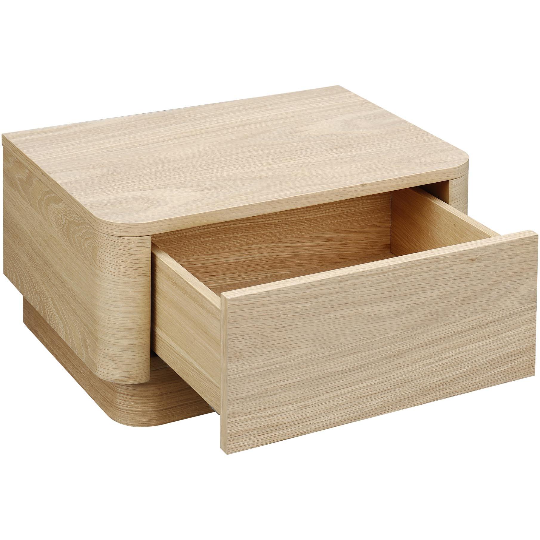 Your bed’s better half. The Round Off brings gentle curves and pale oak tones to your bedside, offering a relaxed look with built-in function. Its low-profile form feels grounded, while the single drawer glides out smoothly on soft-close hardware to keep your essentials close and clutter out of sight. Designed to blend seamlessly into your space—while quietly pulling its weight.