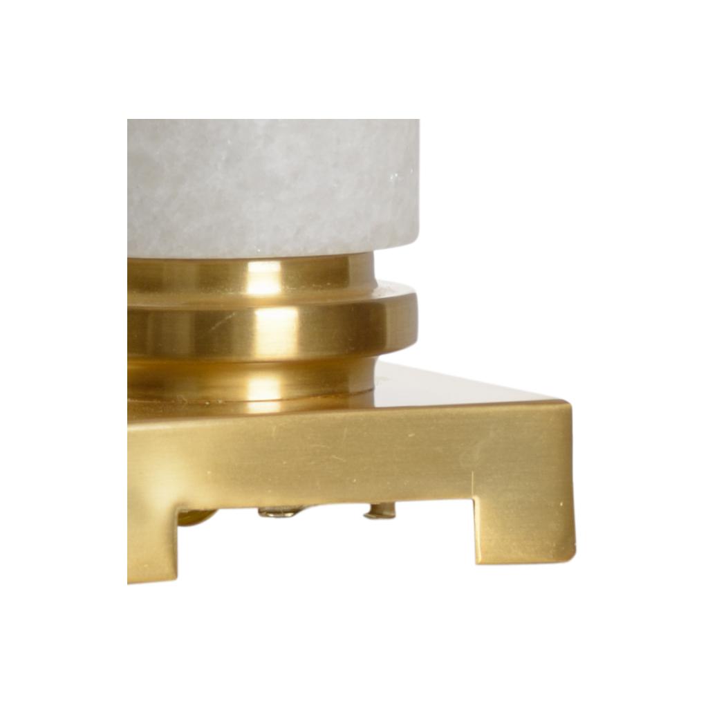 White marble column on metal base.