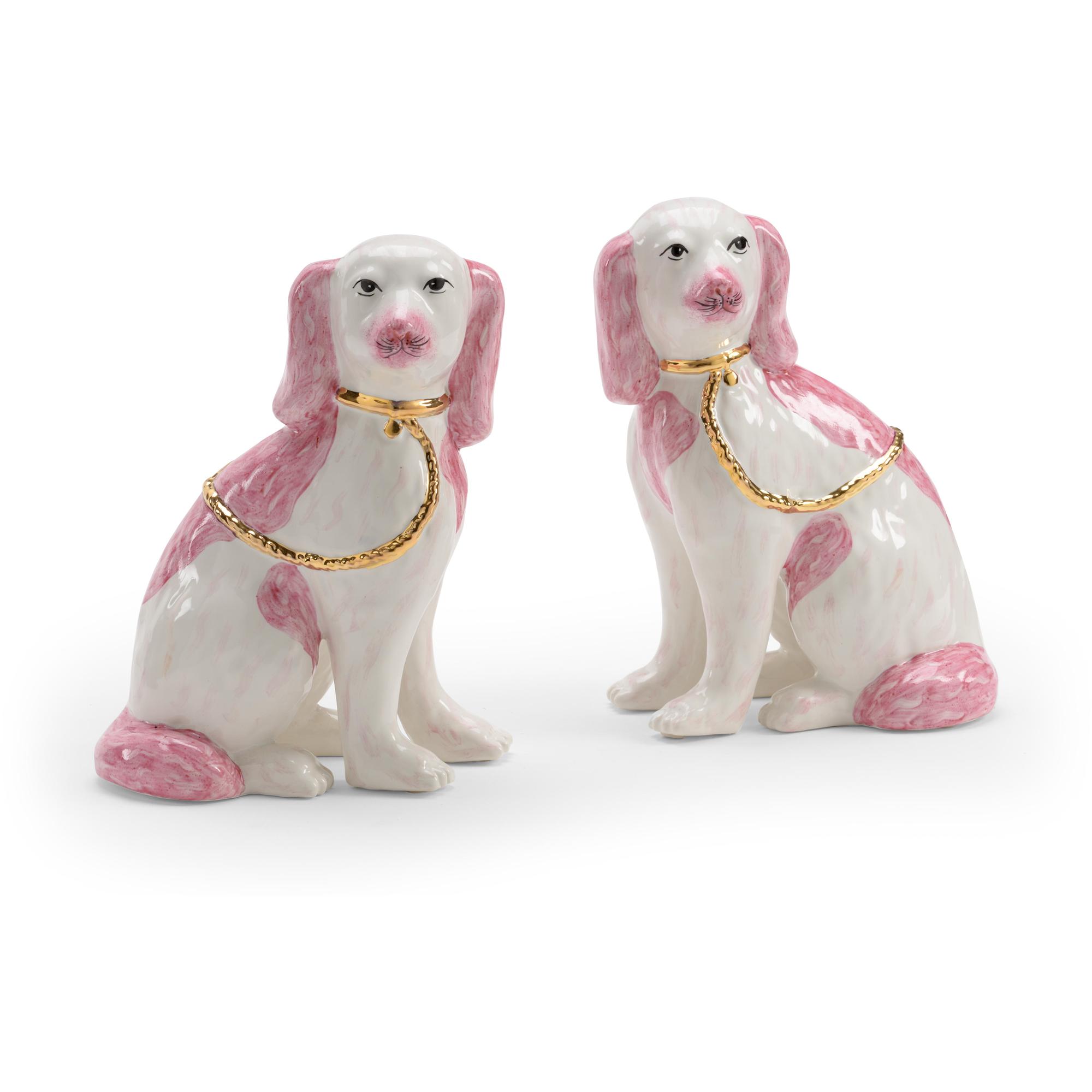 A pair of dogs inspired by the Staffordshire antiques. These lovely animals come as a pair in a variety of colors. Note the attention to detail that reflects the finest of Staffordshire dogs where the front foot is separated from the body. Designed by Shayla Copas.