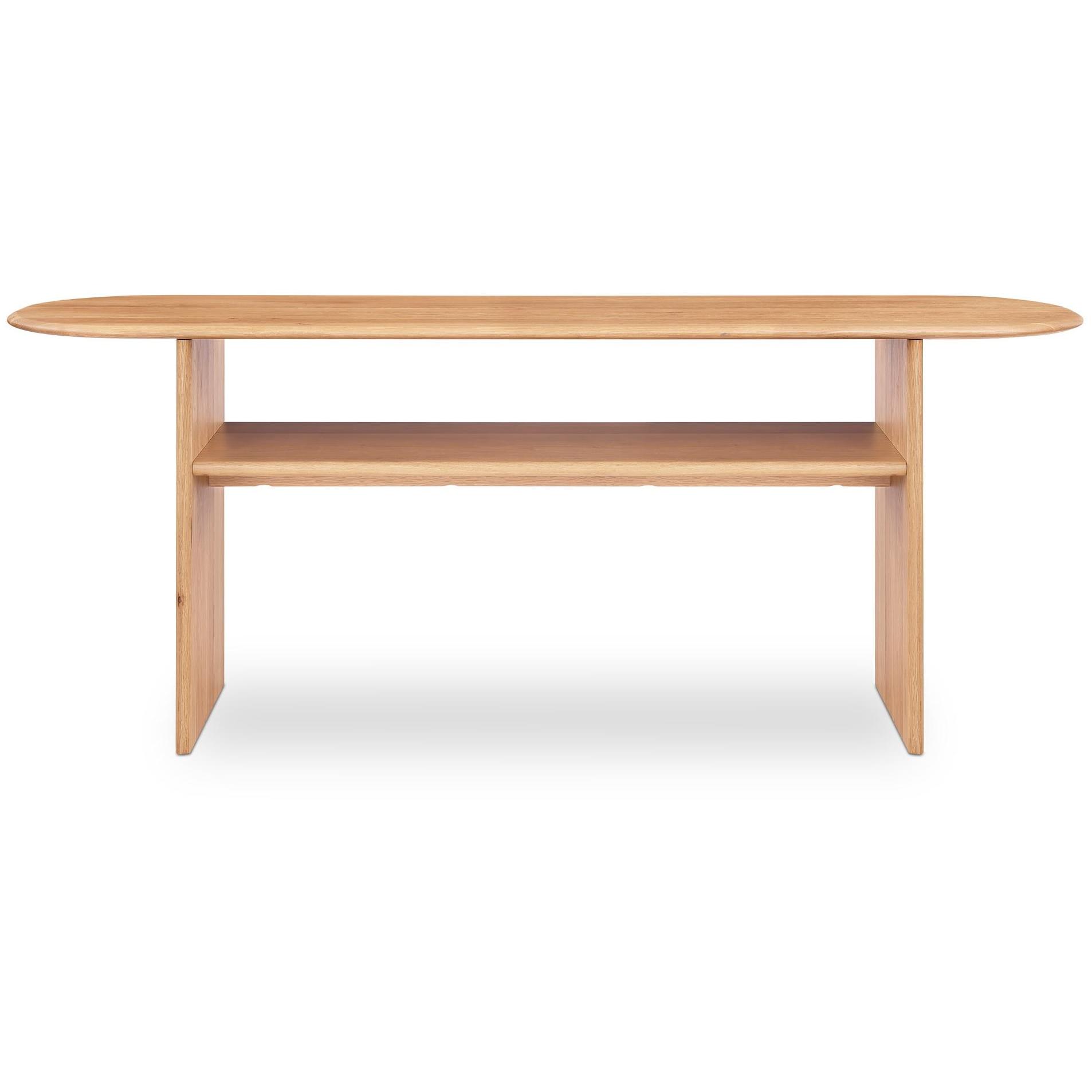 Capsule curves with everyday ease? Yes, please. Ruby keeps things soft, simple, and totally pulled together. Its capsule-shaped solid oak top adds just the right curve to your space, while the open shelf brings easy storage to wherever it lands—entryway, hallway, behind the sofa. The rounded edges make it family-friendly; the minimal shape makes it timeless. It’s a backdrop piece that gets the assignment: subtle, useful, and secretly a showoff.