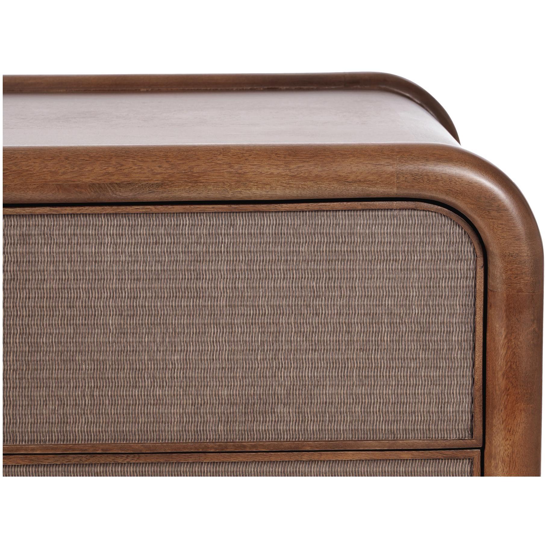 An inventive translation of piping detailing on traditional upholstery, the tonal woven soft rush front adds texture while complementing the solid mango wood construction of the Rye collection. More commonly recognized as Tatami-omote, this tightly woven multilayered natural rice straw is a centuries-old natural material known for its durability and temperature absorption originating in Japan.