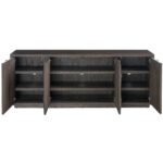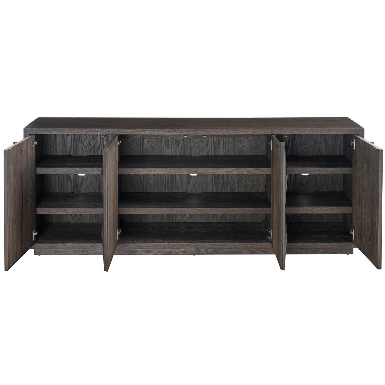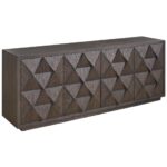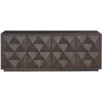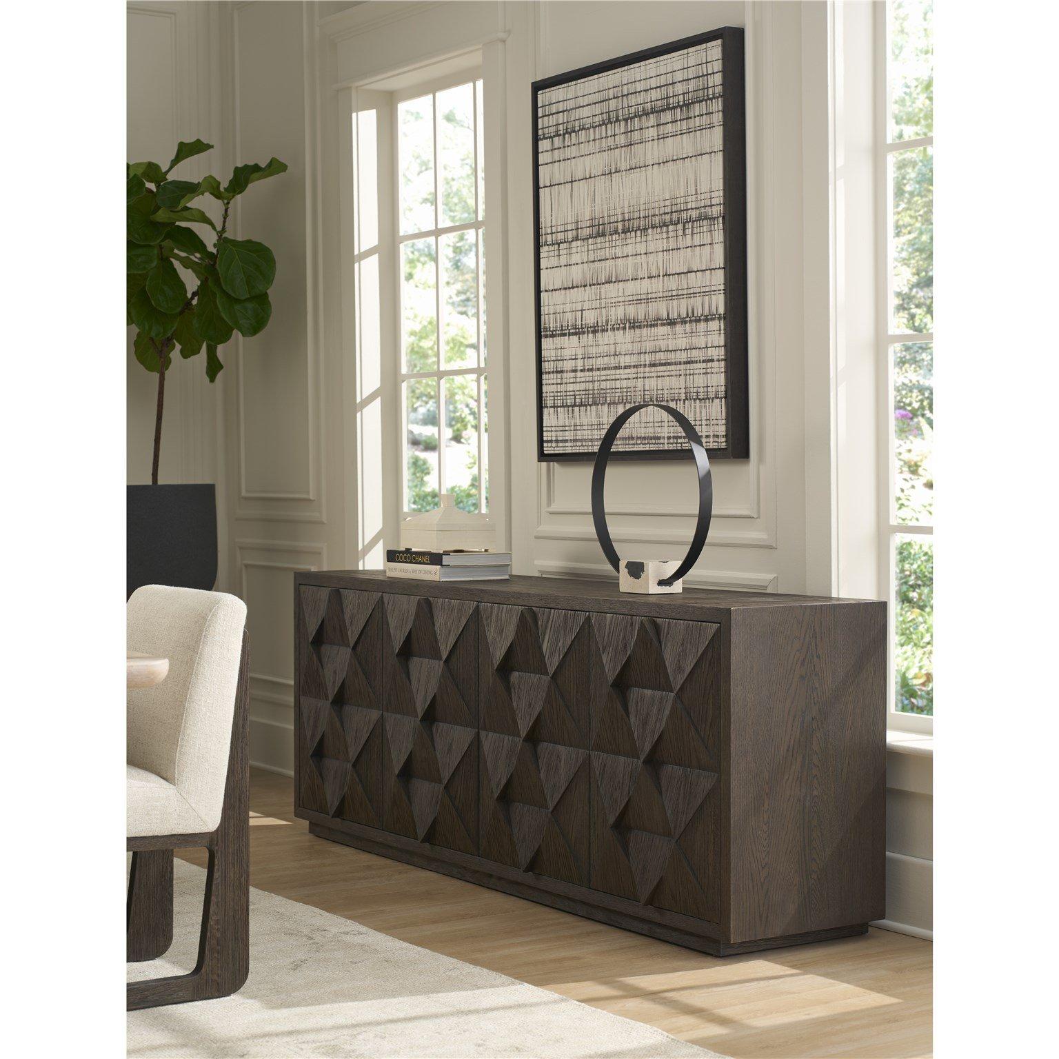 The Sable Credenza makes a geometric statement in any dining or living space. Its deep Sable finish highlights the intricate, faceted design of the doors, creating a focal point that’s both stylish and functional for storage and display.