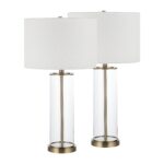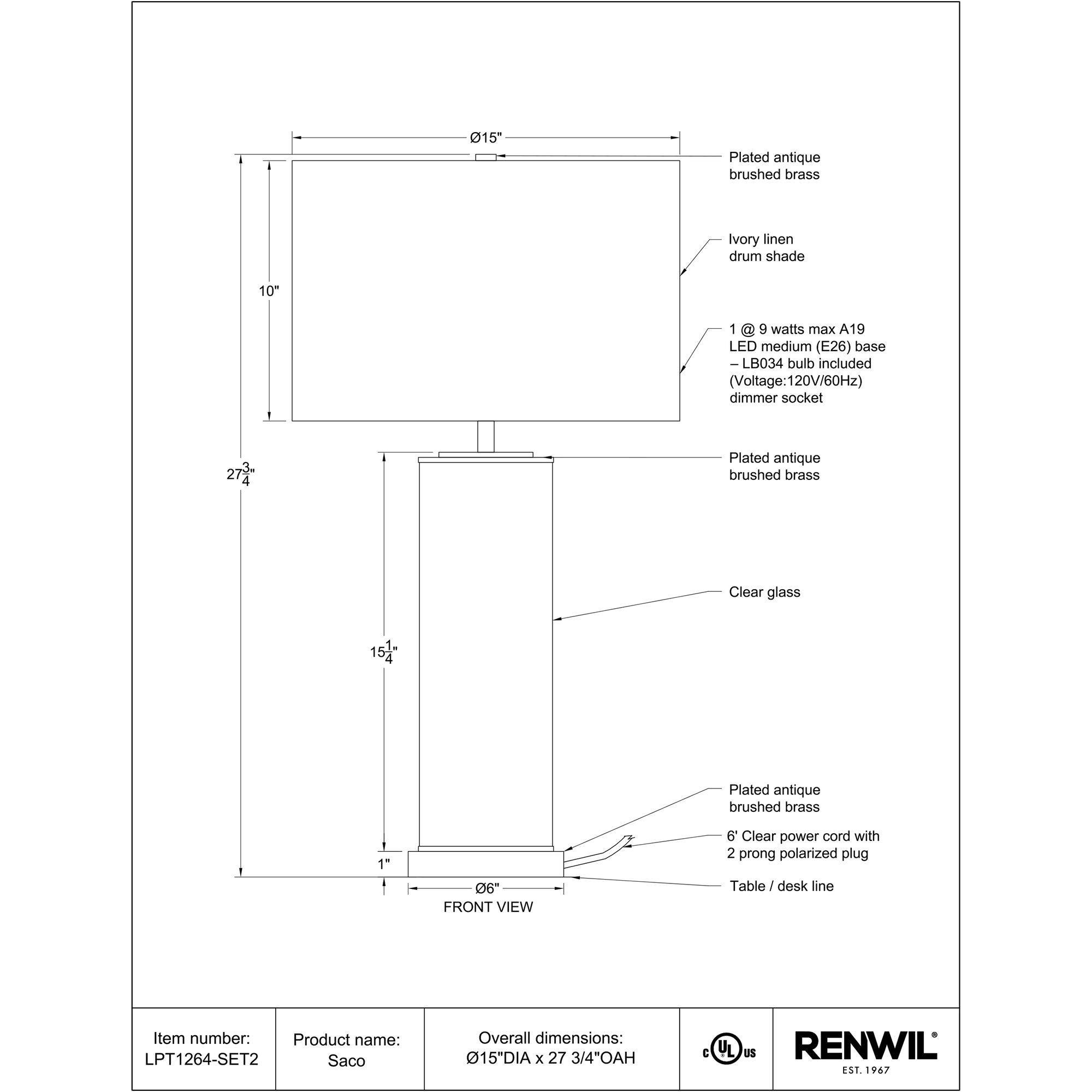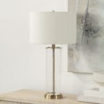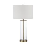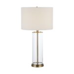 Upgrade your space with the sophisticated and stylish Saco 28″ Tall Satin Brass Glass Table Lamp. With a sleek clear finish, it seamlessly connects with standard E26 sockets, making it easy to incorporate into your existing decor. This lamp is also versatile, supporting bulbs up to 100W, allowing you to create the perfect ambiance for any occasion with its dimmer socket. The drum cream linen shade adds a touch of classic elegance to the lamp’s modern design. It is also available in a set of 2, ensuring a cohesive and polished look for your space.