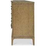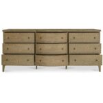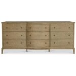 The Sadie 9-drawer dresser’s gentle curves and wire-brushed oak finish embrace modern traditionalism. The artfully designed overhang with rounded edges and curved front offers a soothing visual rhythm. Nine spacious drawers with delicate metal knobs provide ample storage, balancing form and function.