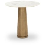 - Expressive Marble: The Sage Cafe Table combines a round Cosmos marble top with a mid-tone brown oak pedestal base, creating a complementary blend of natural materials.