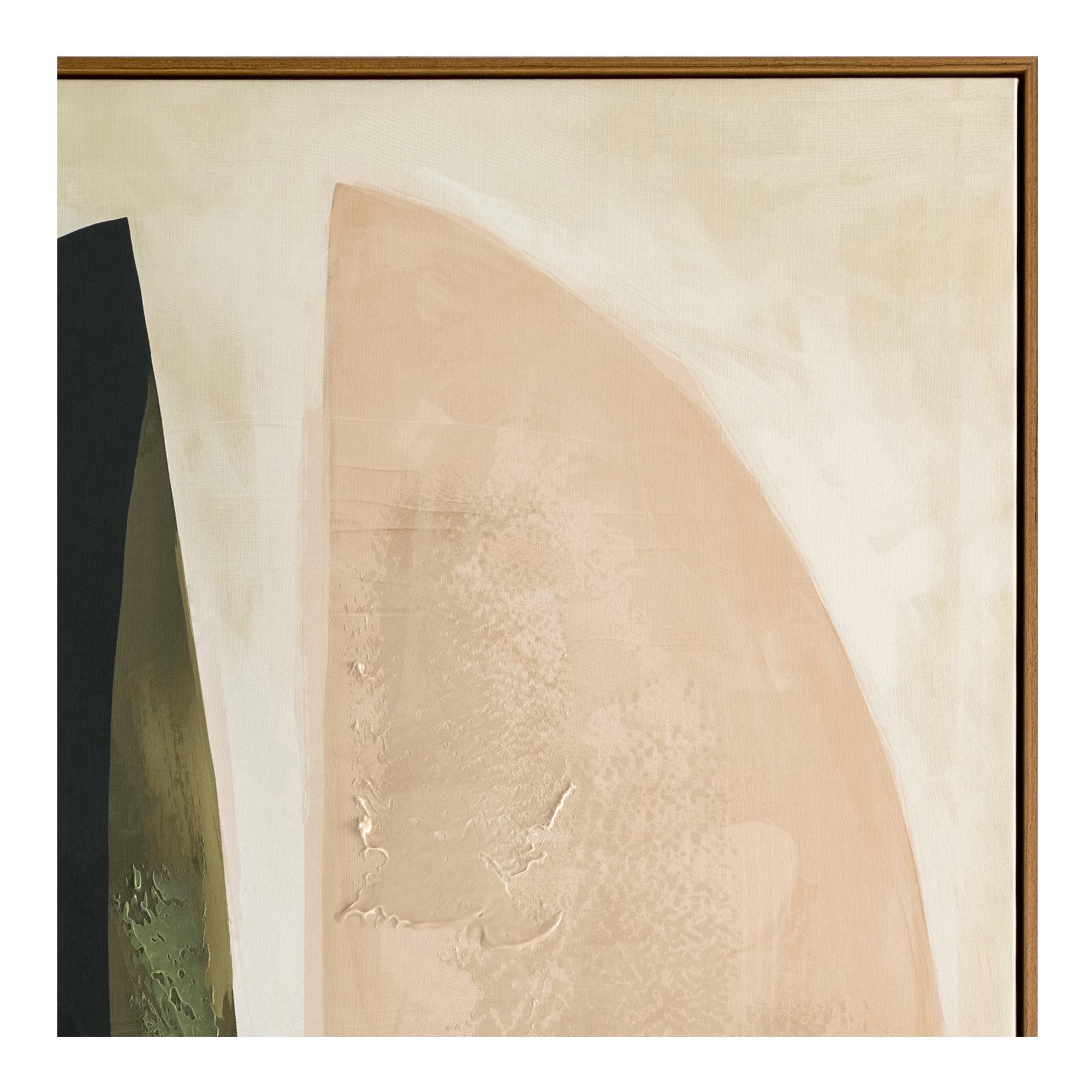 The Sage framed painting is an abstract canvas that captures the essence of wisdom exchanged. Muted warm tones, gentle greens, and soft pinks evoke serenity, while a grounding black accent adds depth. Enhanced with acrylic paint on canvas and embraced by a solid wood frame, this piece serves as a thought-provoking focal point.