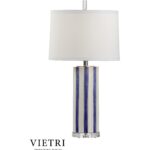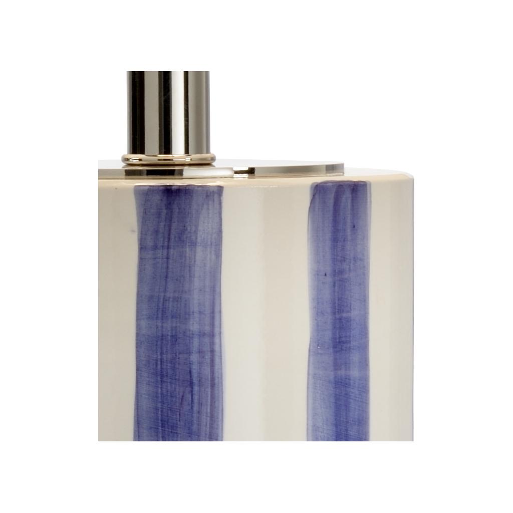 Hand painted striped Italian ceramic cylinder with cream and blue glaze and a clear acrylic mounting. Designed by Vietri.