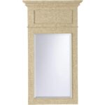 A fresh version of a 19th century antique purchased at Paris Flea Market. It’s made fresh and current in cream raffia with beveled mirror. Designed by Jamie Merida.
