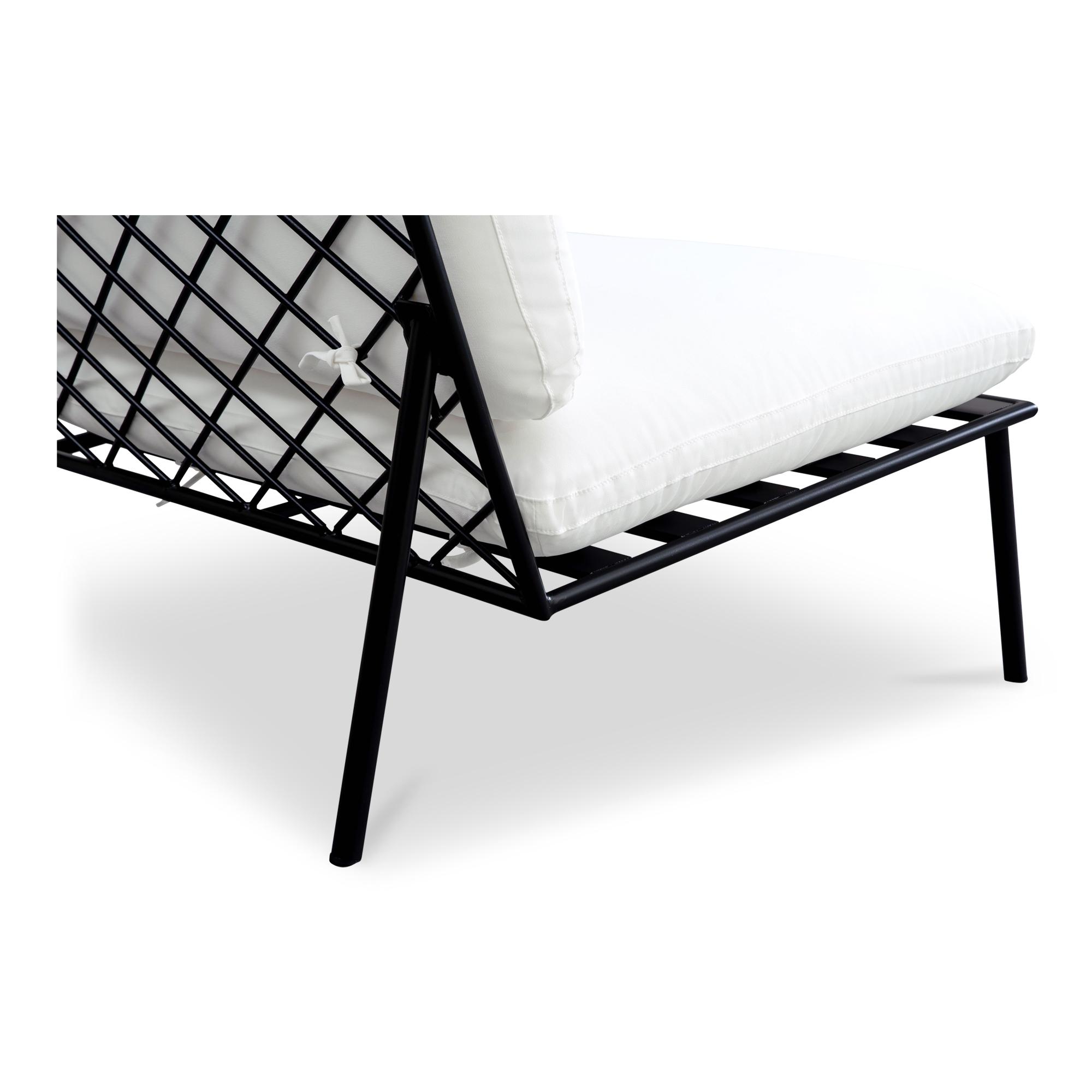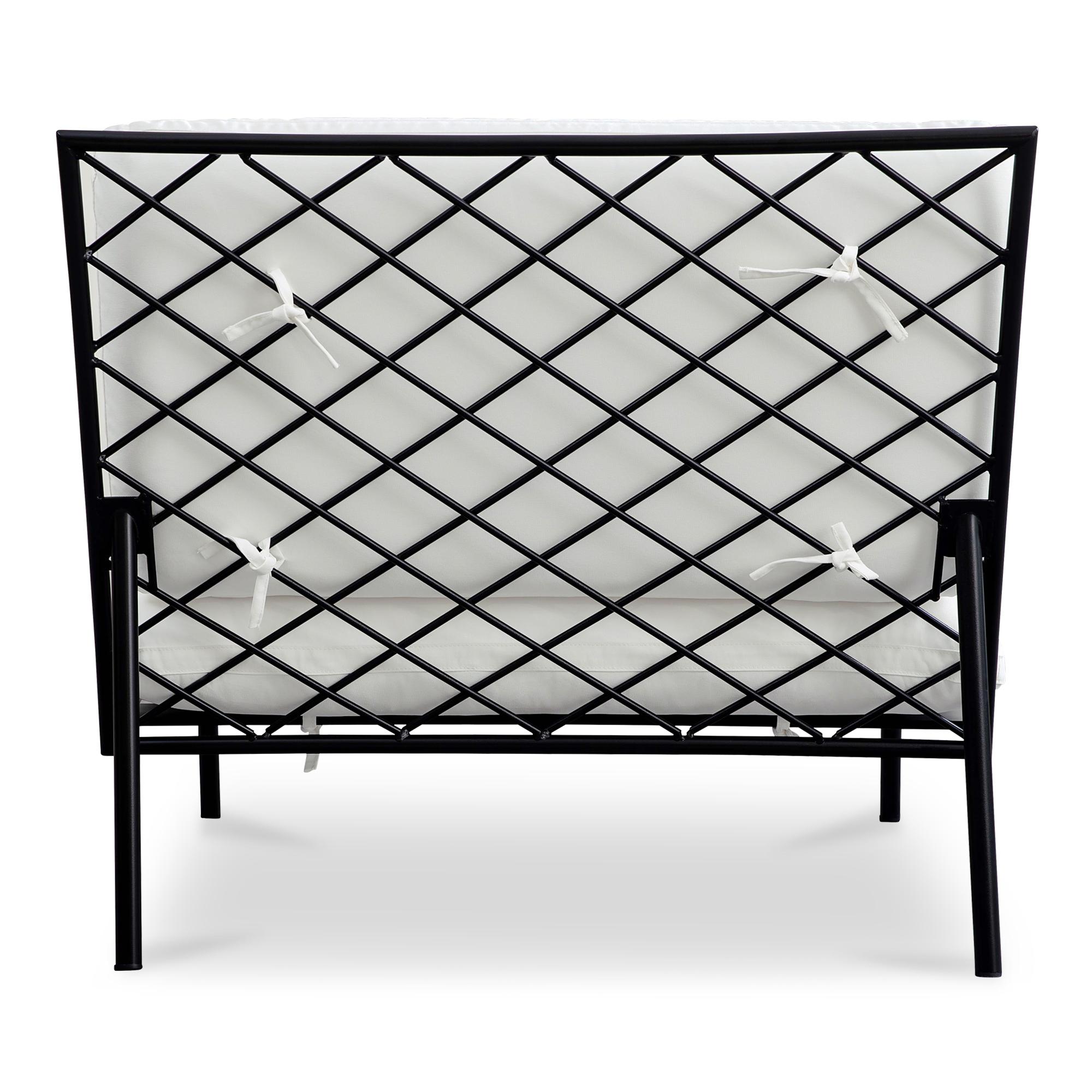 The Salma outdoor accent chair’s armless design includes quick-dry foam cushions covered in 100% Olefin fabric that resists fading and includes ties for stability. It features a durable stainless-steel frame with elegant crisscross detailing. This piece combines superior comfort with exceptional weather resilience, making it perfect for outdoor use.