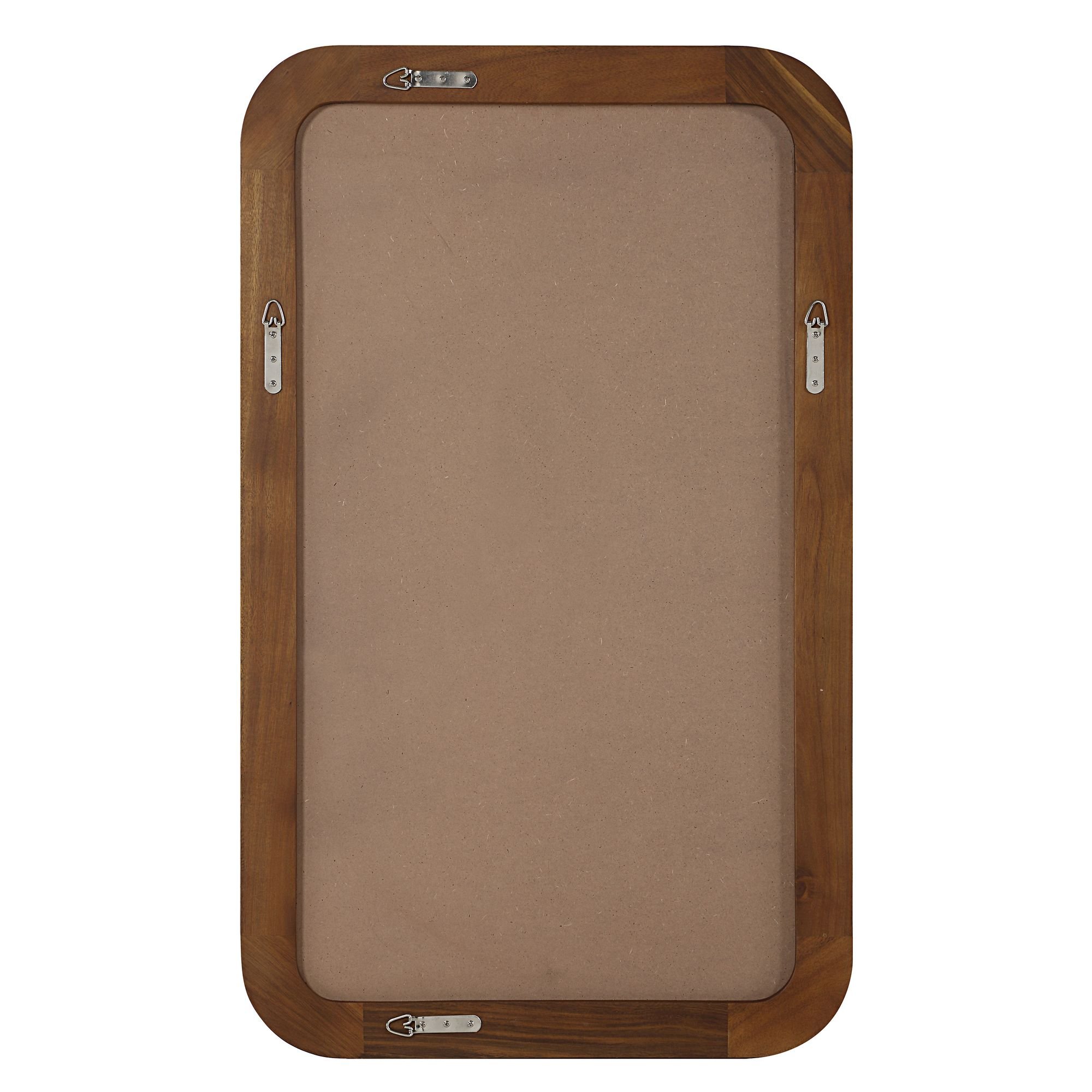 Wood accents have a way of bringing sophistication and warmth to any room and this rectangular wall art mirror is no exception. Crafted with a walnut-painted solid wood frame, it features rounded corners for an on-trend twist, making it just the thing to complete your interior design project.