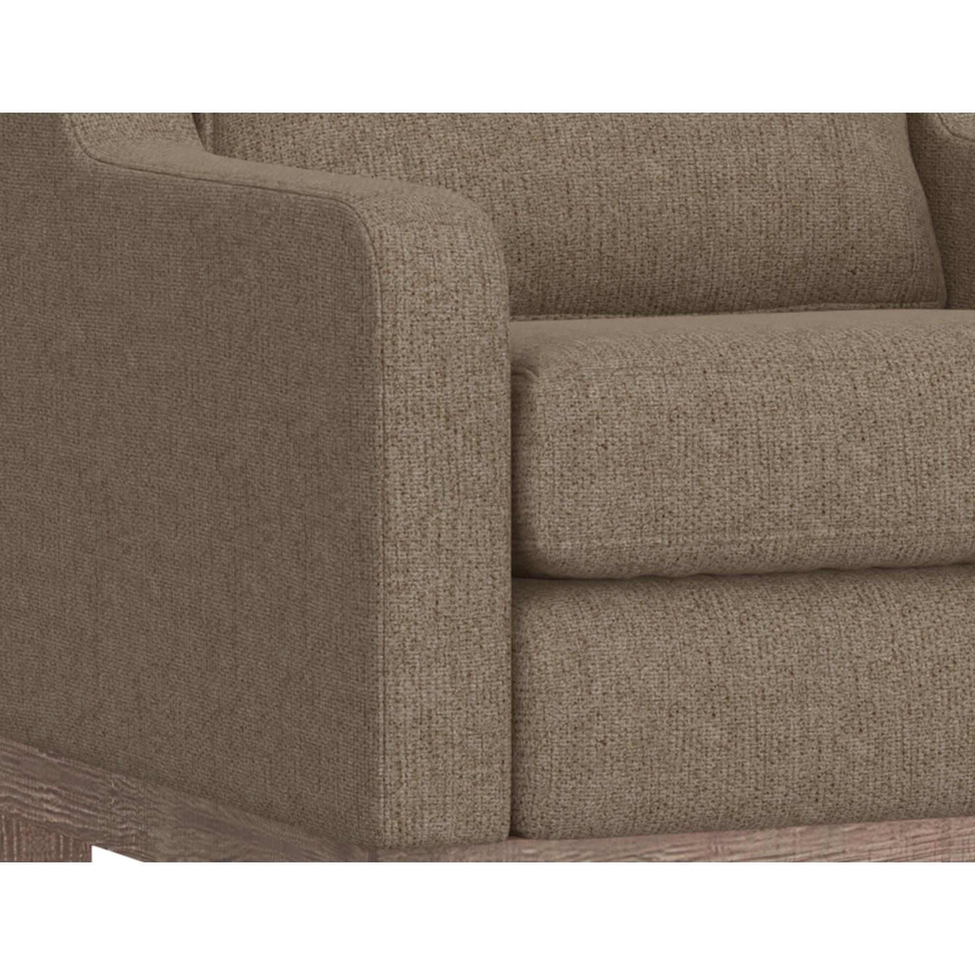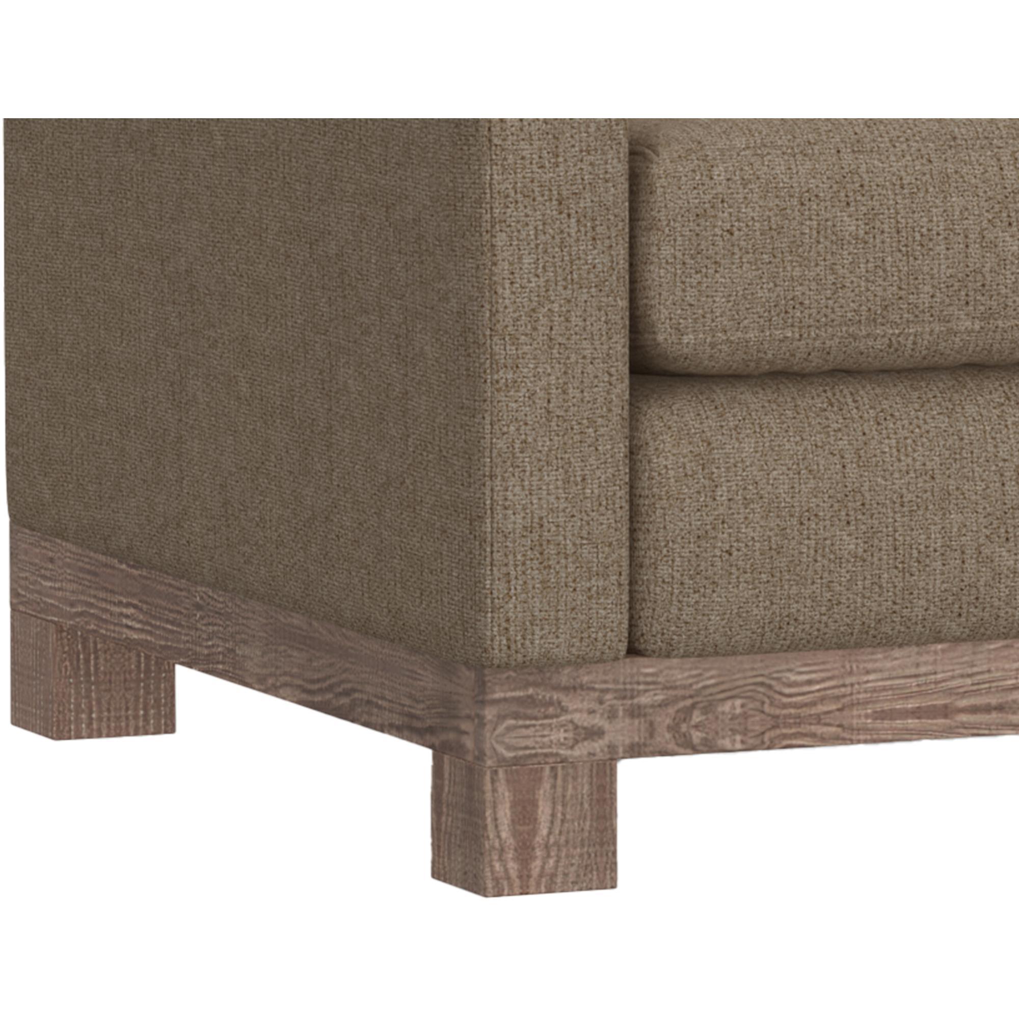 With its chunky, wide silhouette, the Samba collection infuses your living room with a touch of traditional charm. Supported by a sturdy frame crafted from solid pine wood, it rests gracefully on low-profile block feet with a rich brown hue.