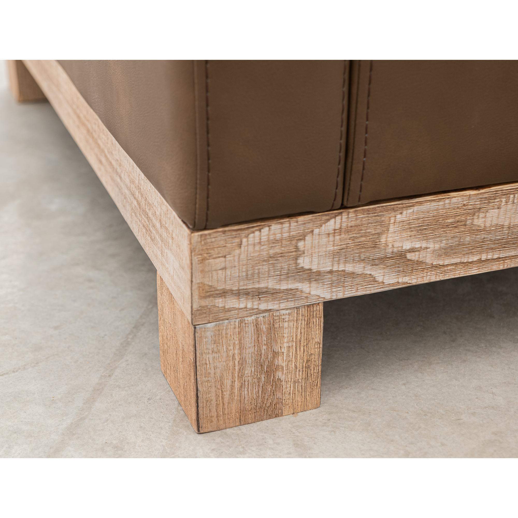 With its chunky, wide silhouette, the Samba collection infuses your living room with a touch of traditional charm. Supported by a sturdy frame crafted from solid pine wood, it rests gracefully on low-profile block feet with a rich brown hue.