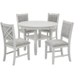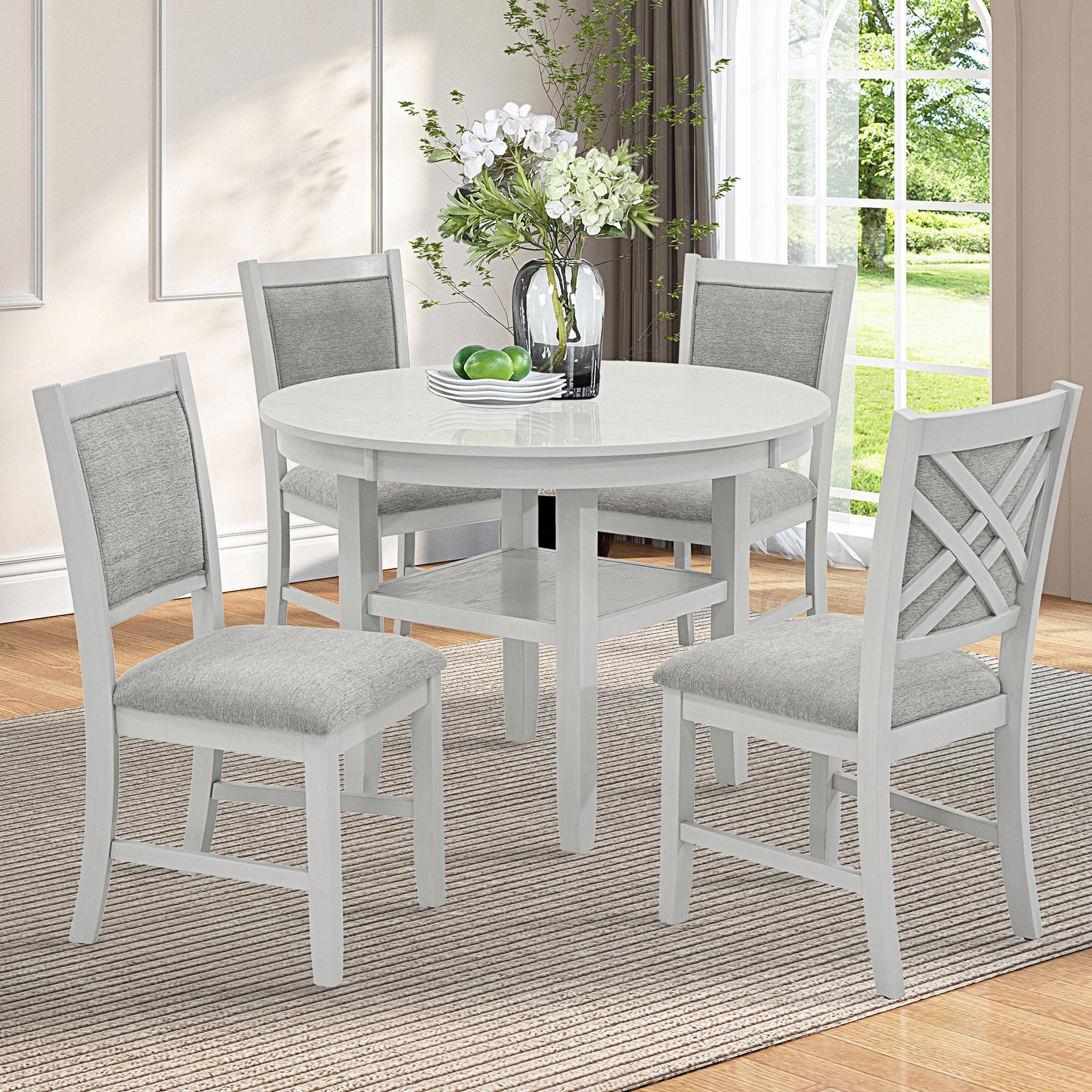- Modern farmhouse style 5-piece dining set includes table and 4 chairs