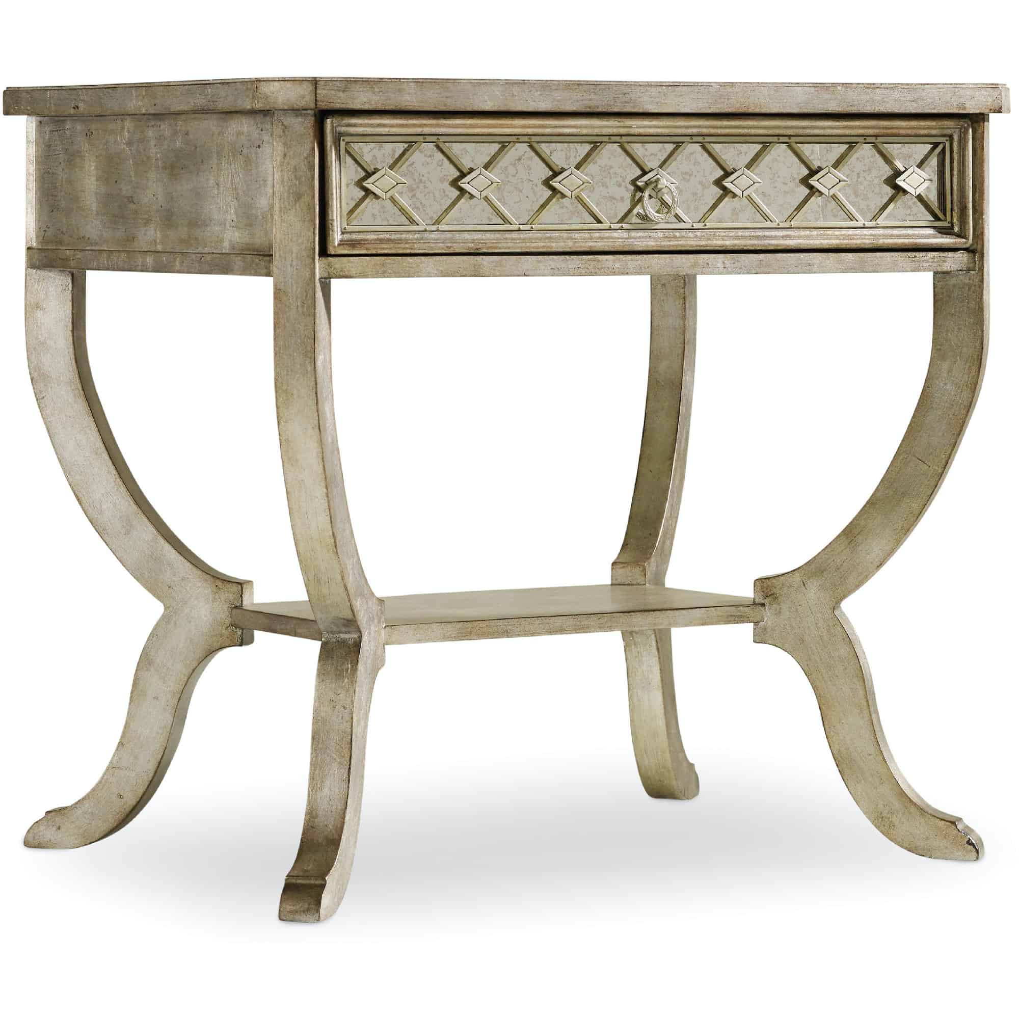 - Material: Hardwoods, Silver Leaf, Wallpaper, Antique Mirror and Solid-Wood Edge Top