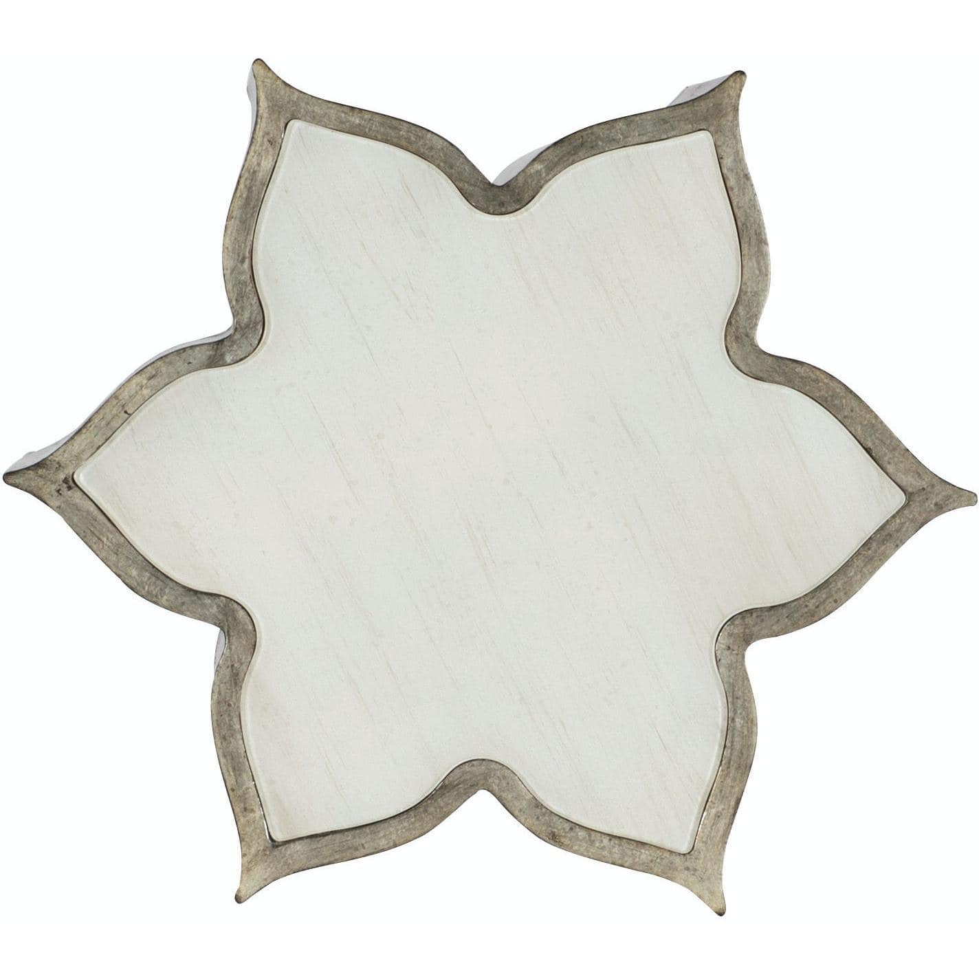 - Material: Silver Leaf and White Painted Glass