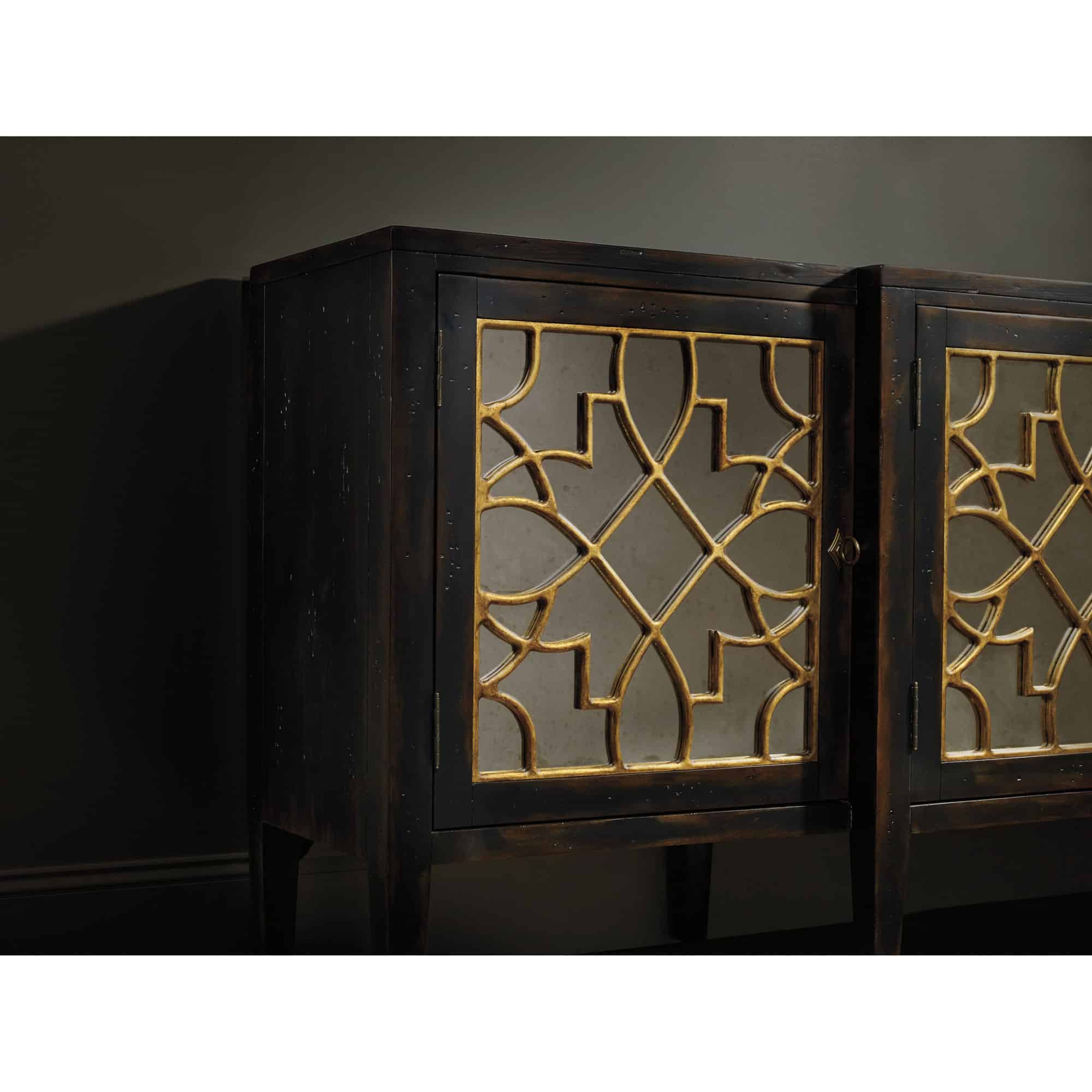One adjustable wood shelf behind doors - Material: White Oak Veneers with Antique Mirror