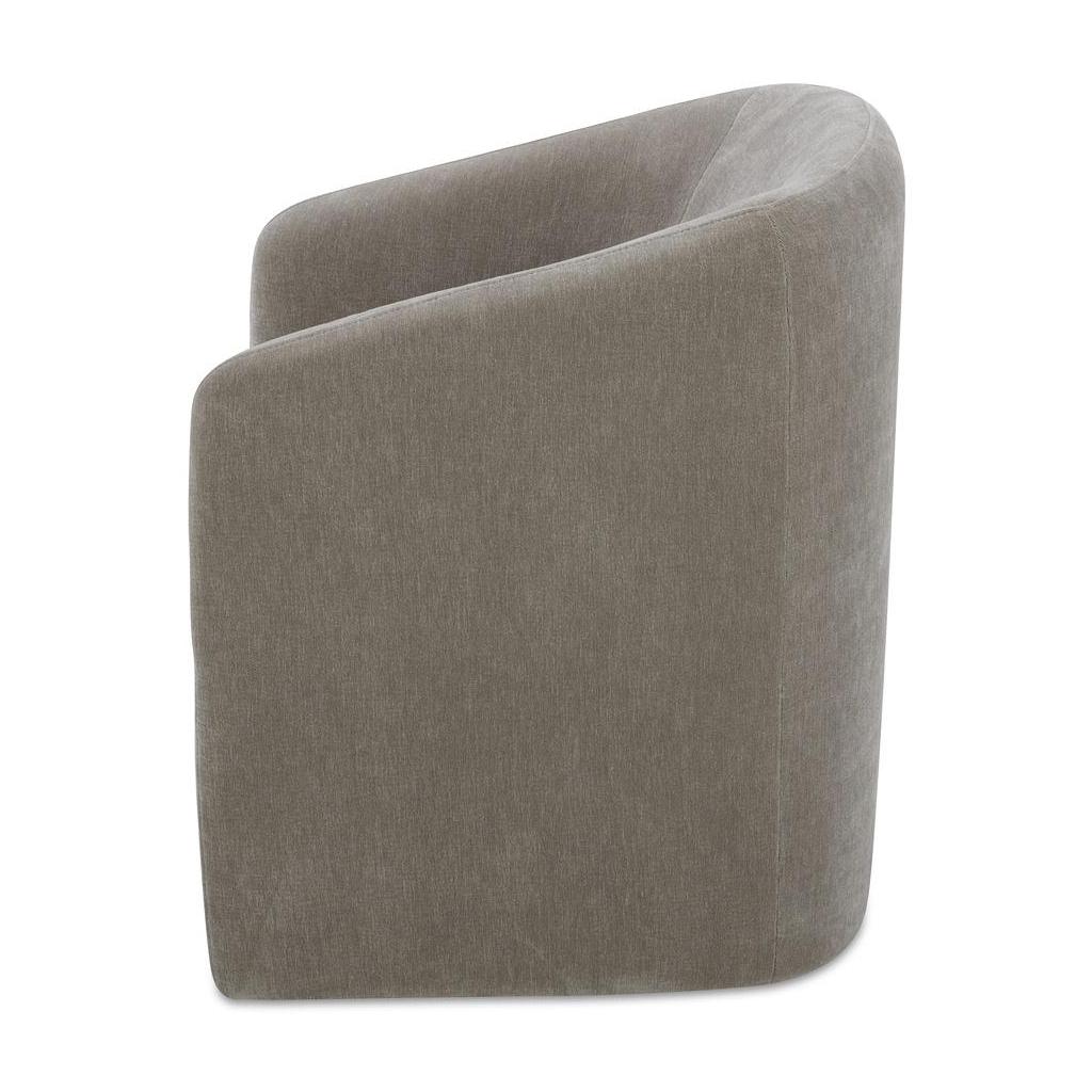 Looks polished and rolls with it. Sandy brings ease to the table. With a curved back, comfy seat, and smooth-rolling casters, it’s built for long meals, quick coffees, and anything in between. Fully wrapped in durable, soft performance fabric, the silhouette feels seamless and considered–for diners who like to drift.