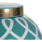 A midsize ginger jar featuring an elongated graceful geometric design in metallic satin gold with a coordinating lid detail. Available in a variety of colors. Designed by Shayla Copas.