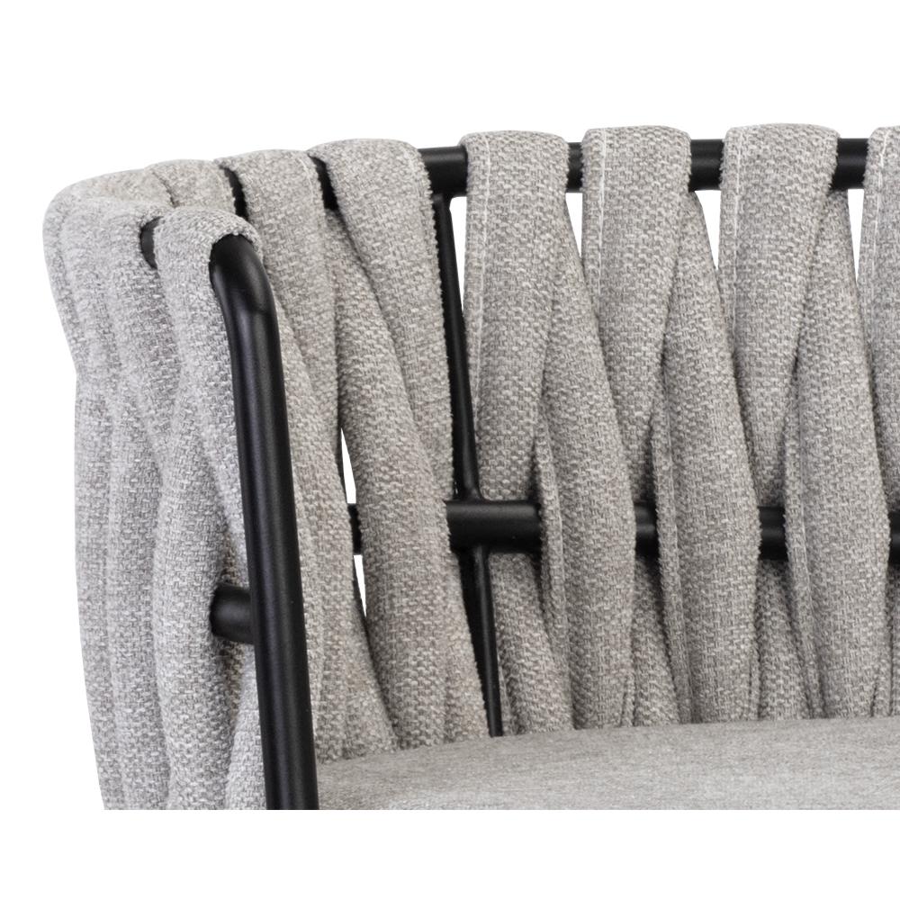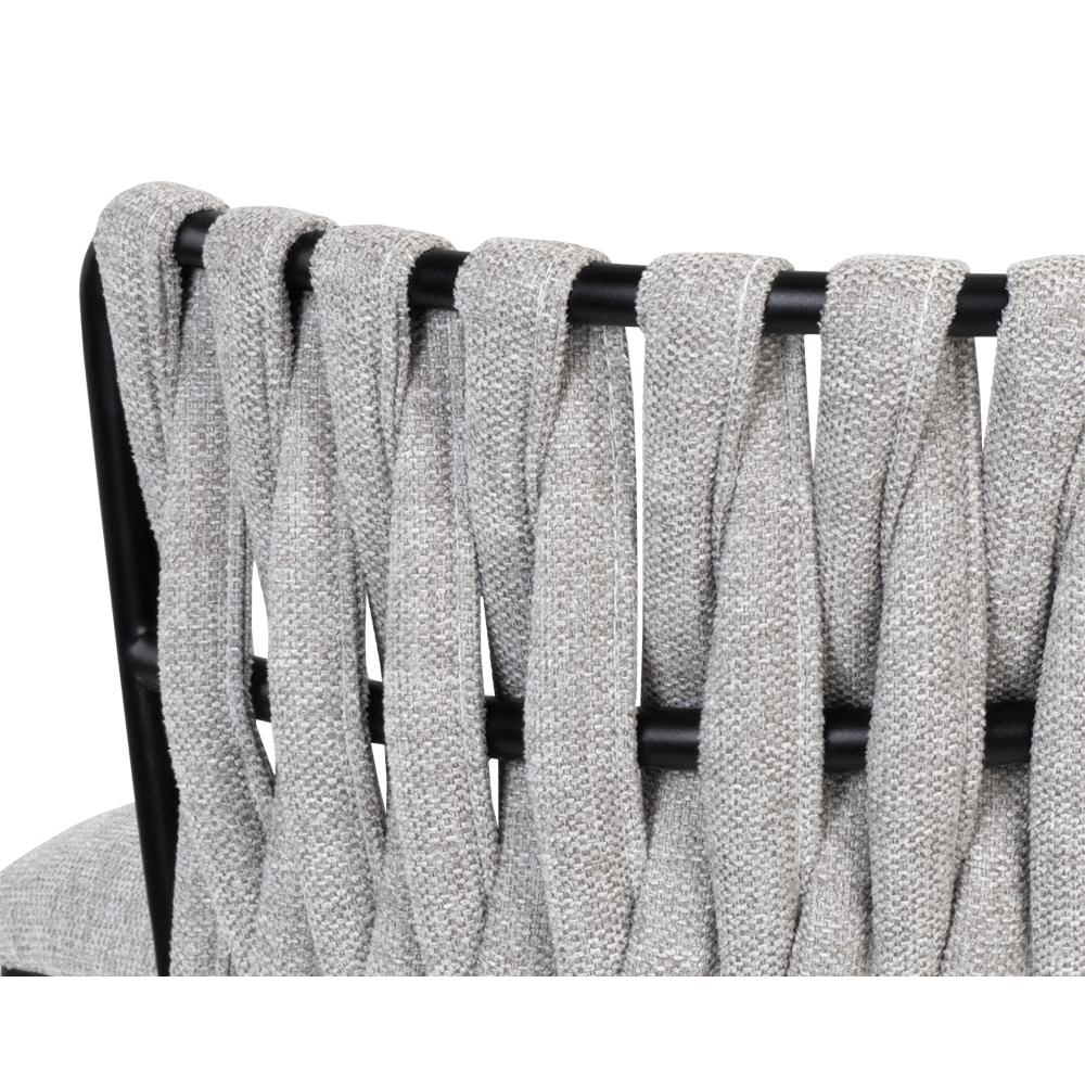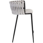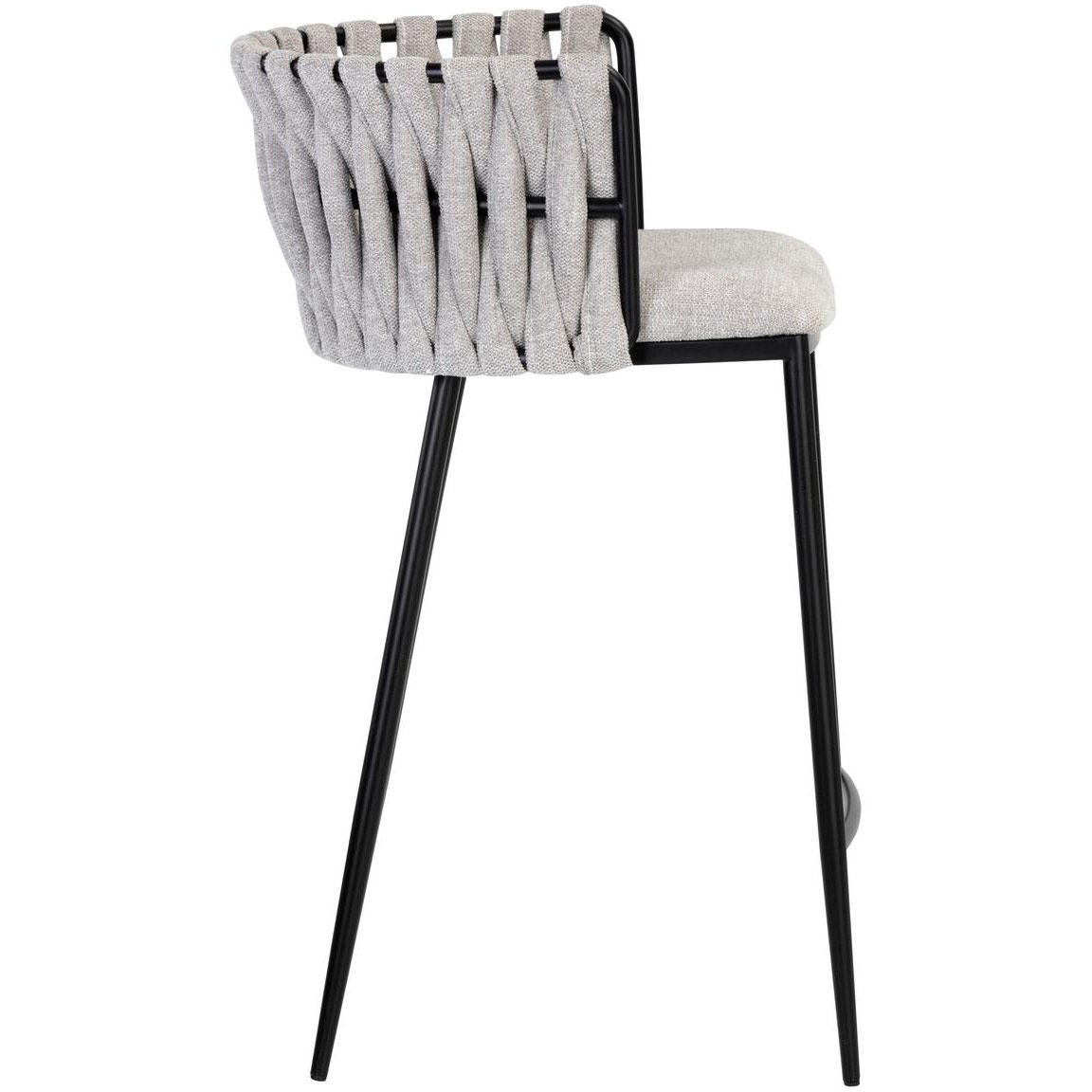 Bold and unconventional, this contemporary counter stool features an eye-catching design that will bring drama to any space. Crafted with a unique weaved backrest that is upholstered in our belfast heather grey and koala grey fabrics. Completed with black powder coated steel frame in a smooth finish.