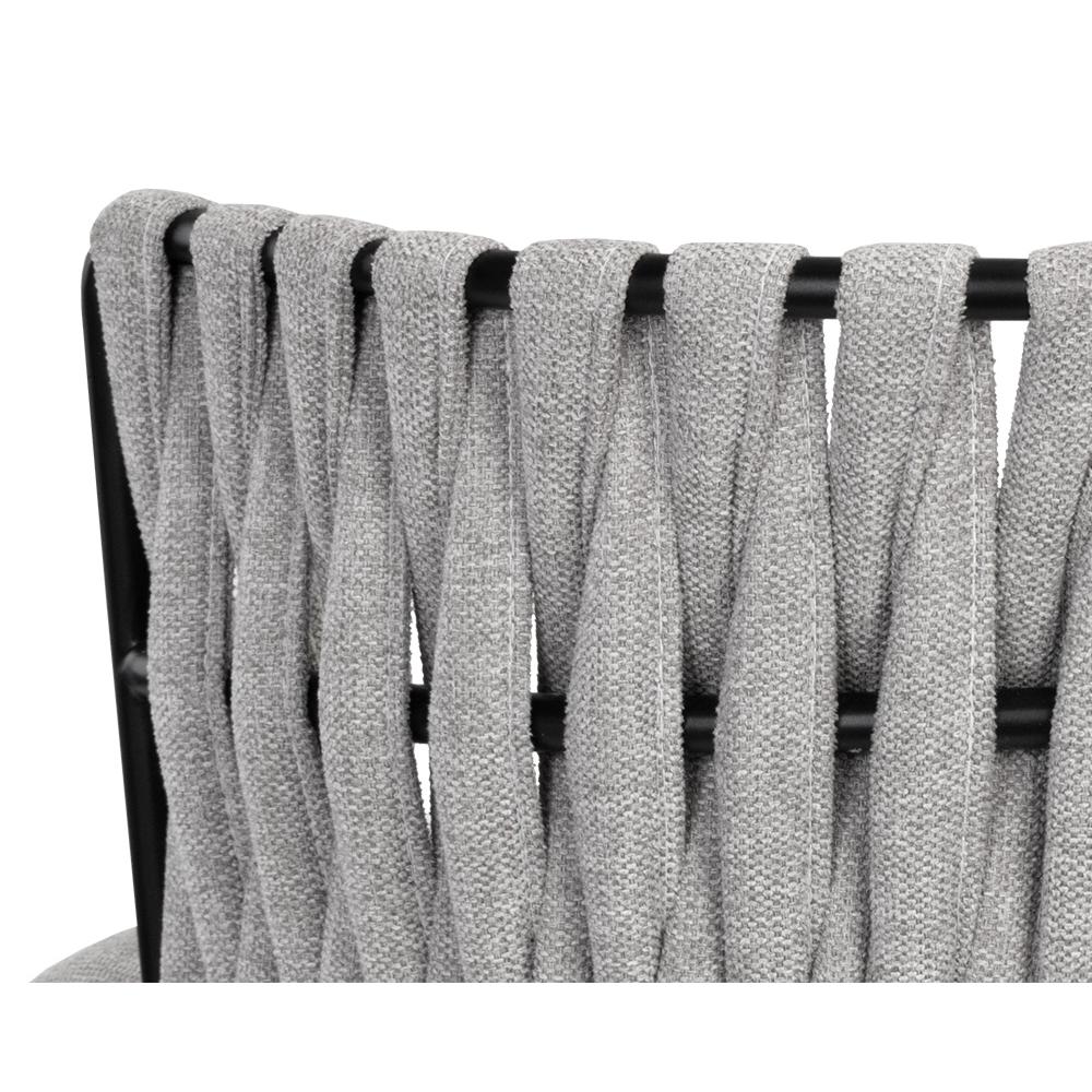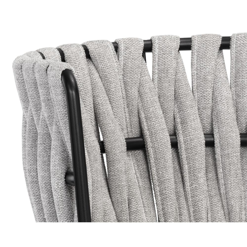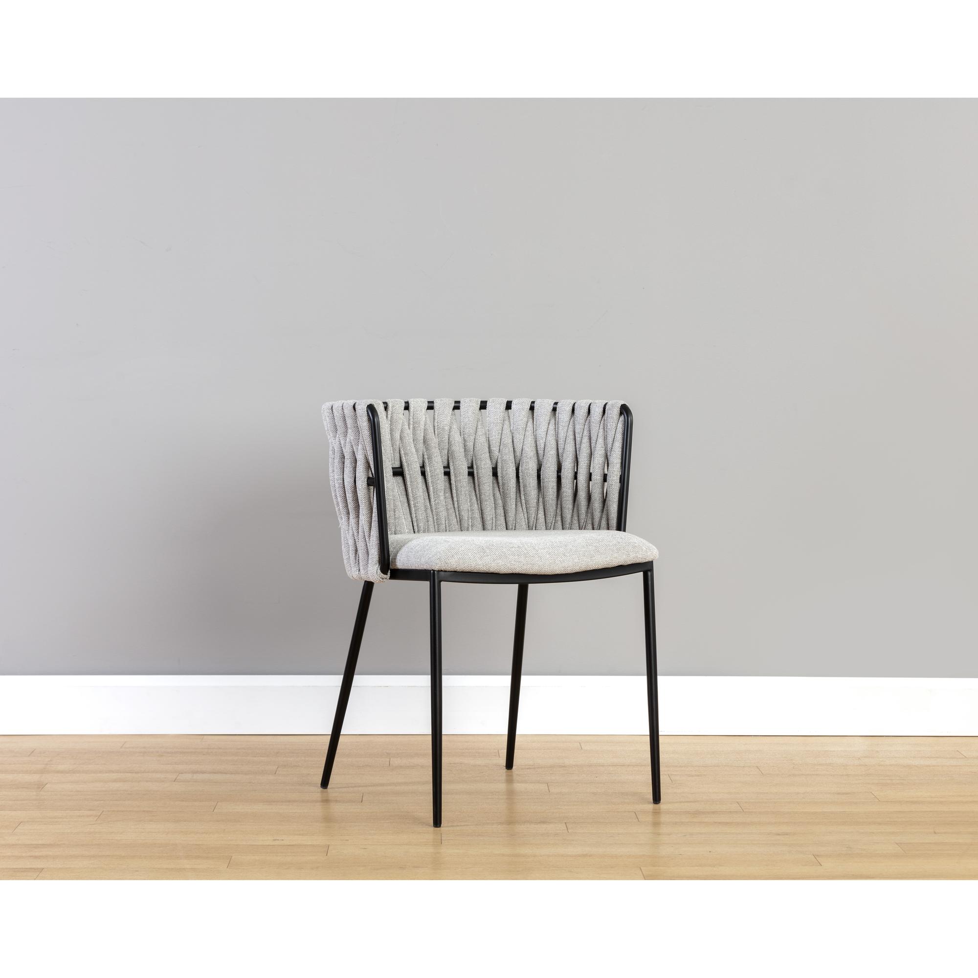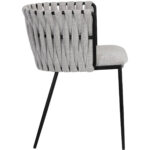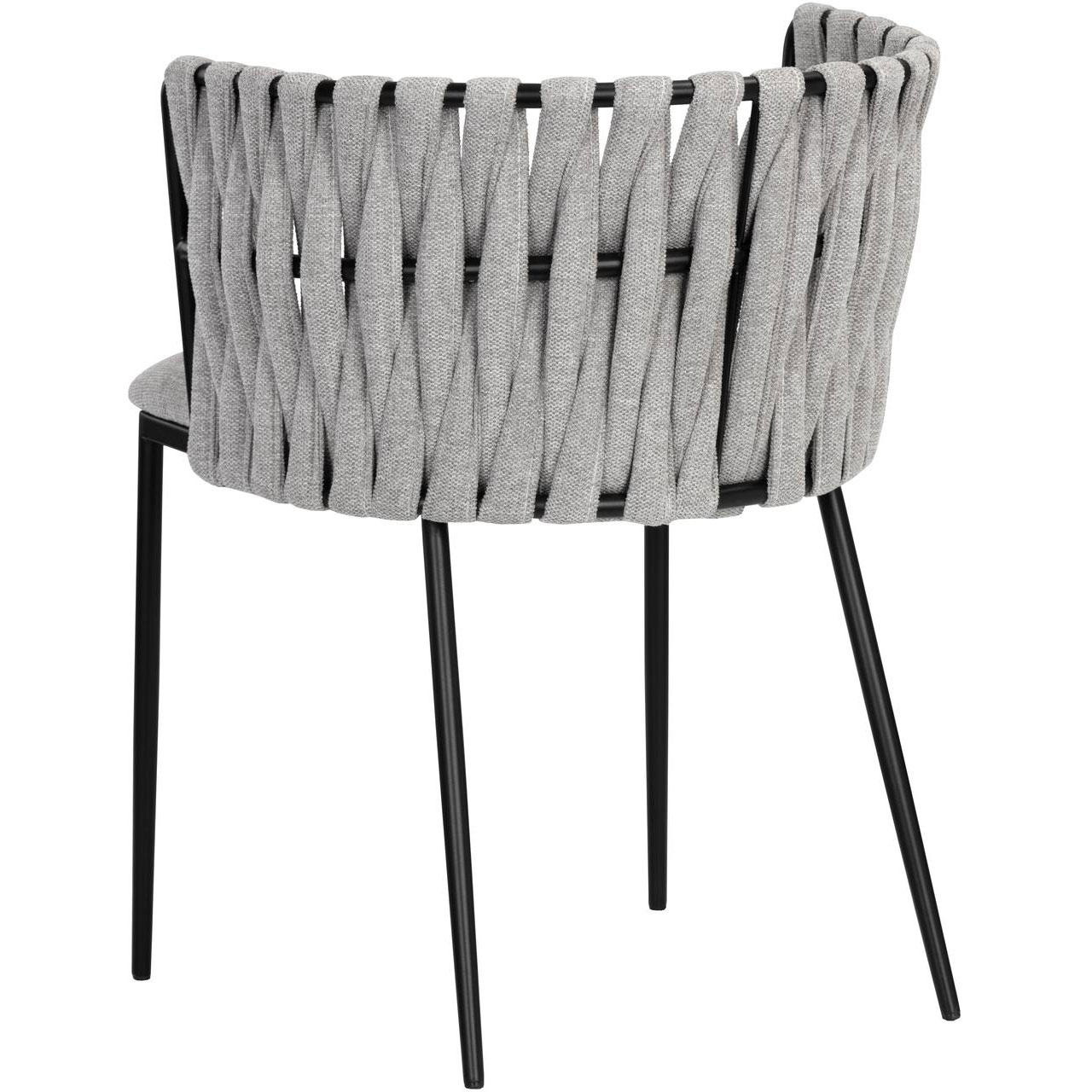 Bold and unconventional, this contemporary dining armchair features an eye-catching design that will bring drama to any dining space. Features a unique weaved backrest that is upholstered in our belfast heather grey and koala grey fabrics. Completed with black powder coated steel frame in a smooth finish.