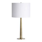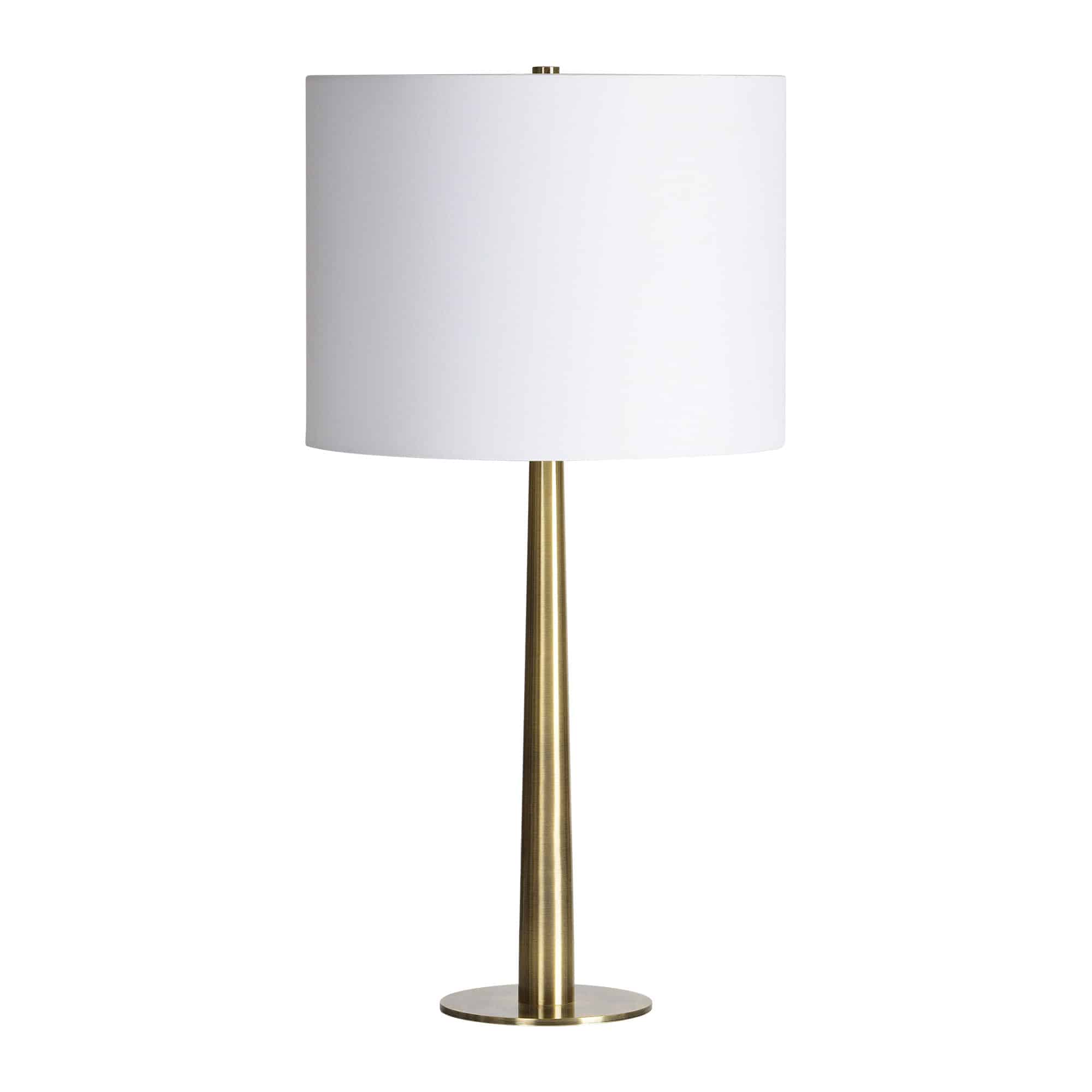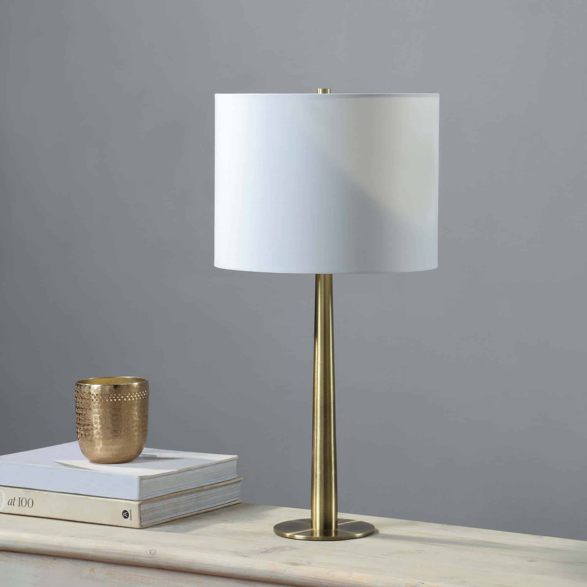 Suitable for mid-century modern, contemporary or glamorous classic interiors, this set of table table lamps requires no additional accessories to elevate a space. Constructed of iron with an antique brushed brass finish, these table lamps radiate warmth while maintaining a sleek sophistication. The unique structure adds an unexpected quality to this design and makes it equally suitable for cozy and streamlined spaces alike.