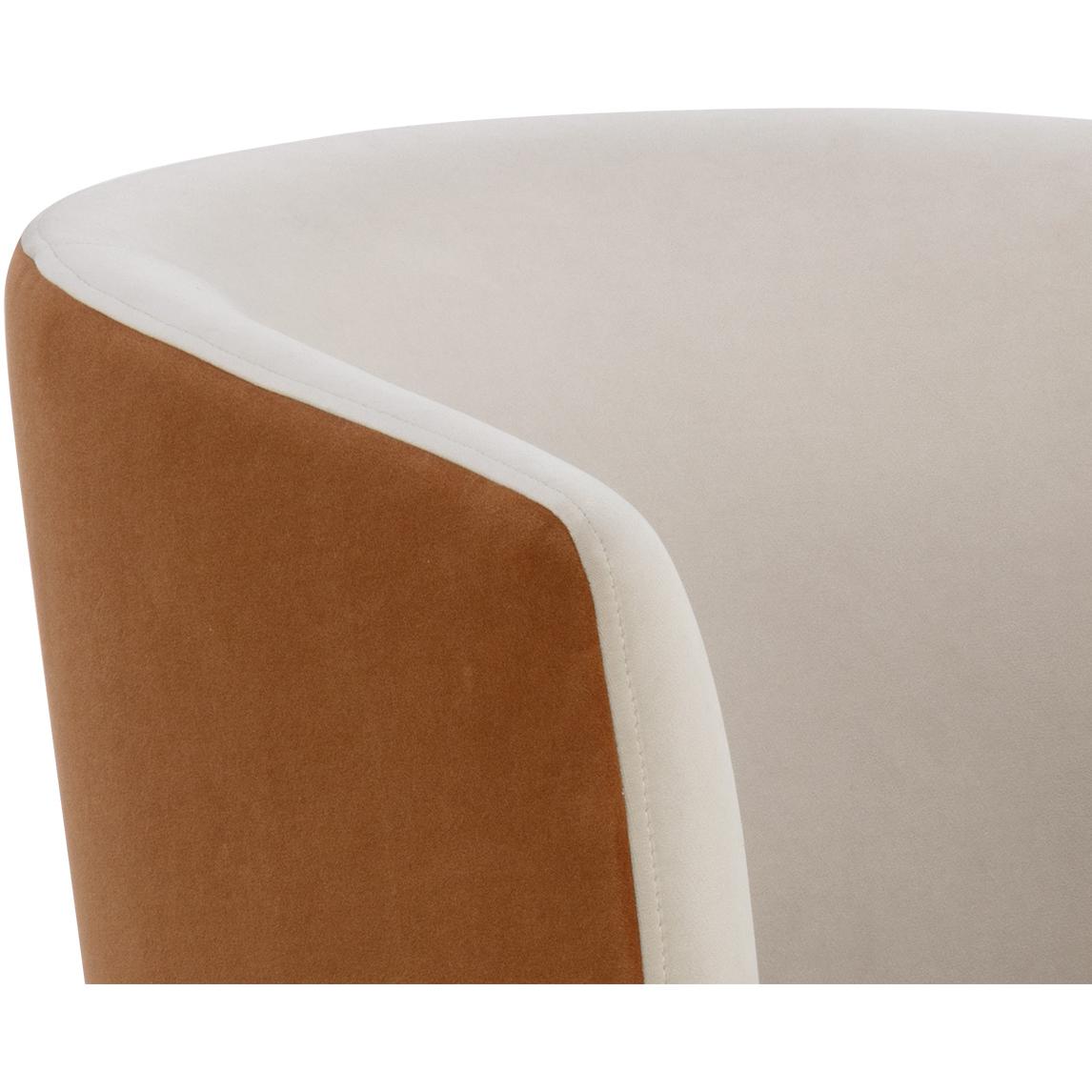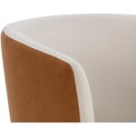 Velvety soft fabric and inviting curves give the Sarina Swivel Lounge Chair a relaxing experience. This stylish two-tone design is expertly upholstered with meg taupe fabric on the seat interior and meg gold fabric on the back exterior.