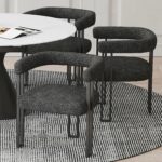 Bring the magazine-worthy dining experience to life with these beautiful, boucle-upholstered dining chairs. The textured fabric is quickly becoming a design staple for creating that high-end feel in your space. The square-line black metal frames and supports the chair perfectly, providing hours of seated comfort. Perfect for formal dining spaces, or kick up your everyday dining experience and pair with your casual kitchen table.