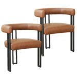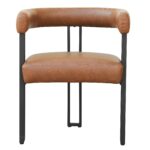 Bring the magazine-worthy dining experience to life with these beautiful, faux leather-upholstered dining chairs. The vintage saddle faux leather is a sophisticated look that will easily create a high-end feel in your space. The square-line black metal frames and supports the chair perfectly, providing hours of seated comfort. Perfect for formal dining spaces, or kick up your everyday dining experience and pair with your casual kitchen table.