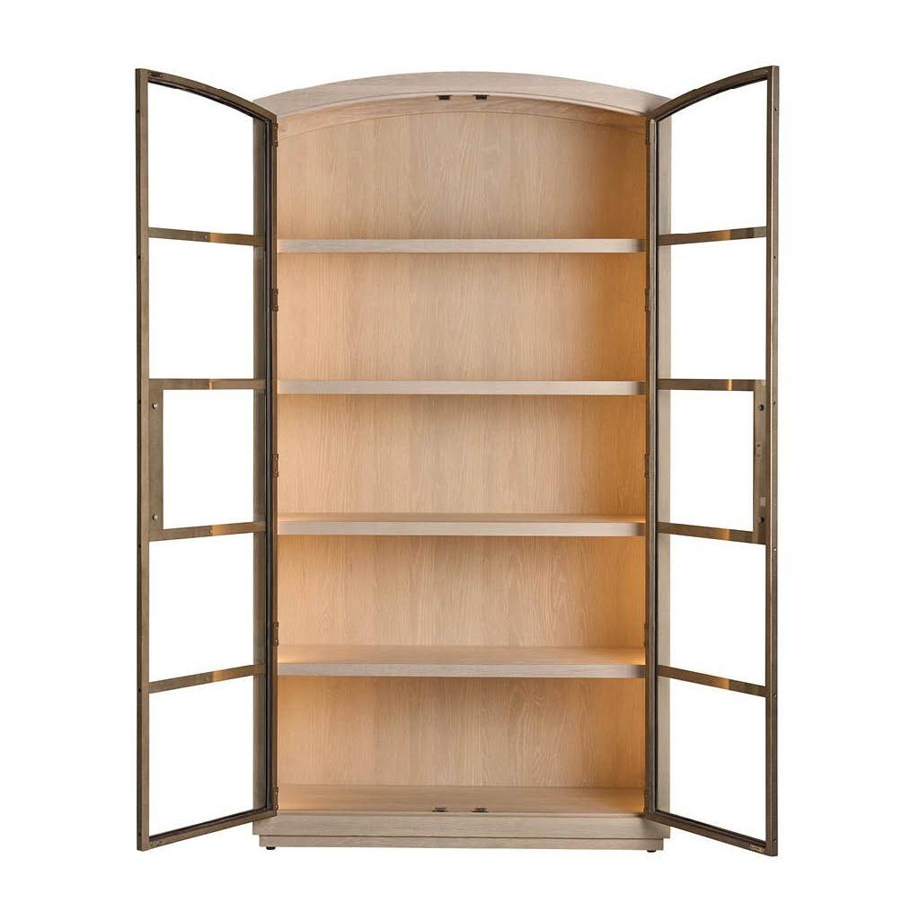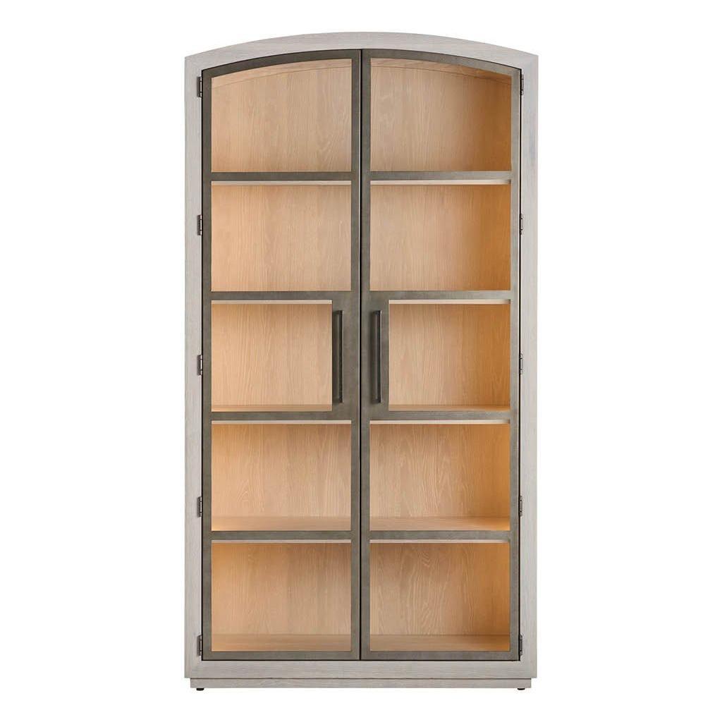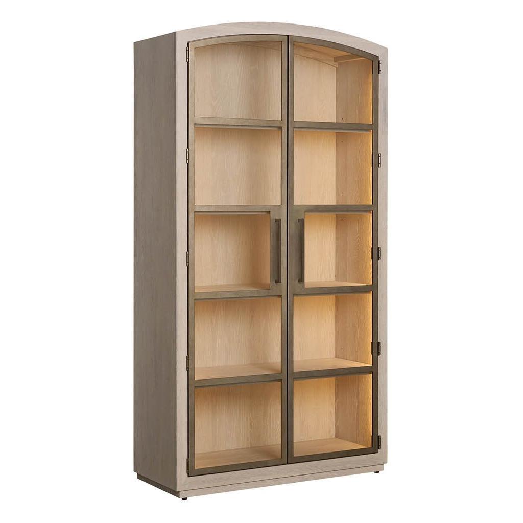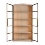 The Scribe Cabinet is a stunning piece of modern furniture. Its sleek, rounded top and minimalist silhouette create a refined aesthetic. The combination of metal doors and a wood case, illuminated by an LED light strip, adds a touch of industrial chic. The three adjustable shelves and one fixed wood shelf offer ample storage space for books, collectibles, or other cherished items.