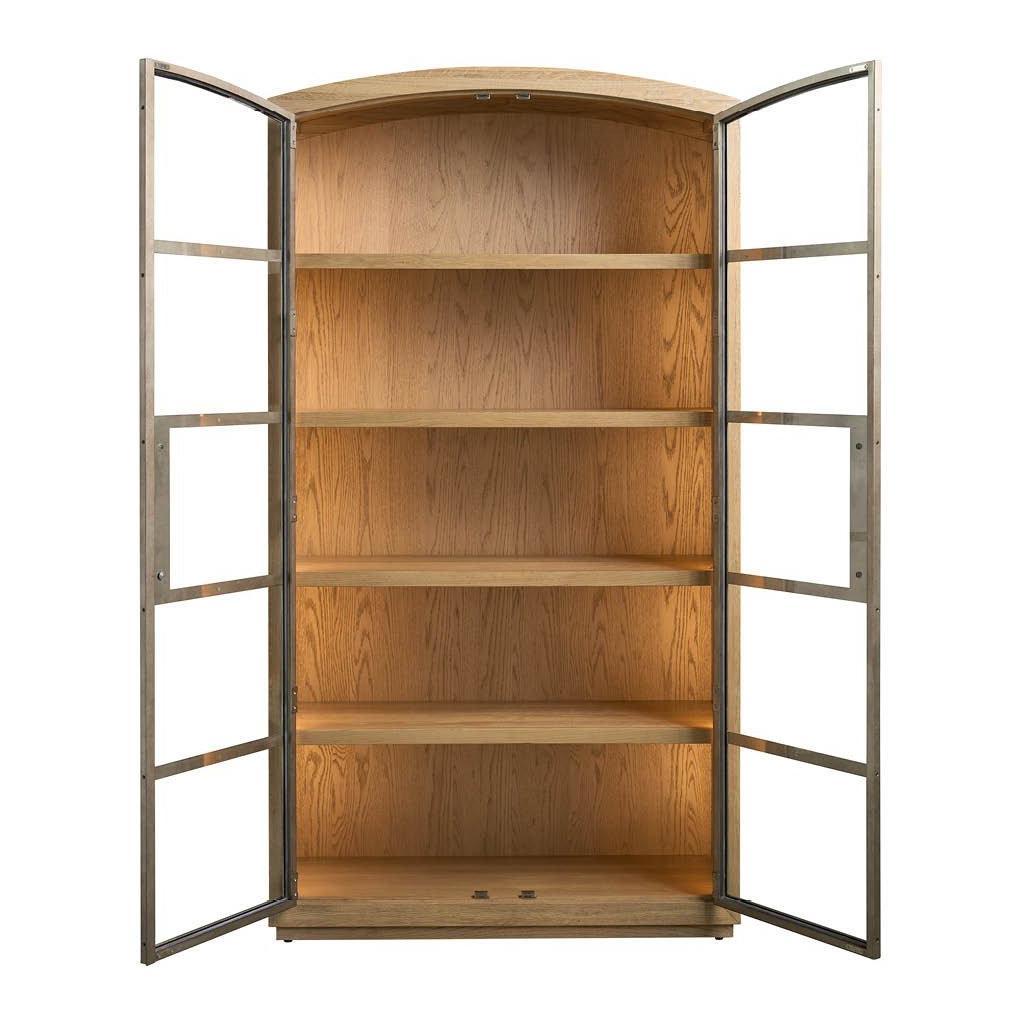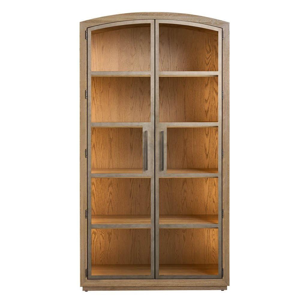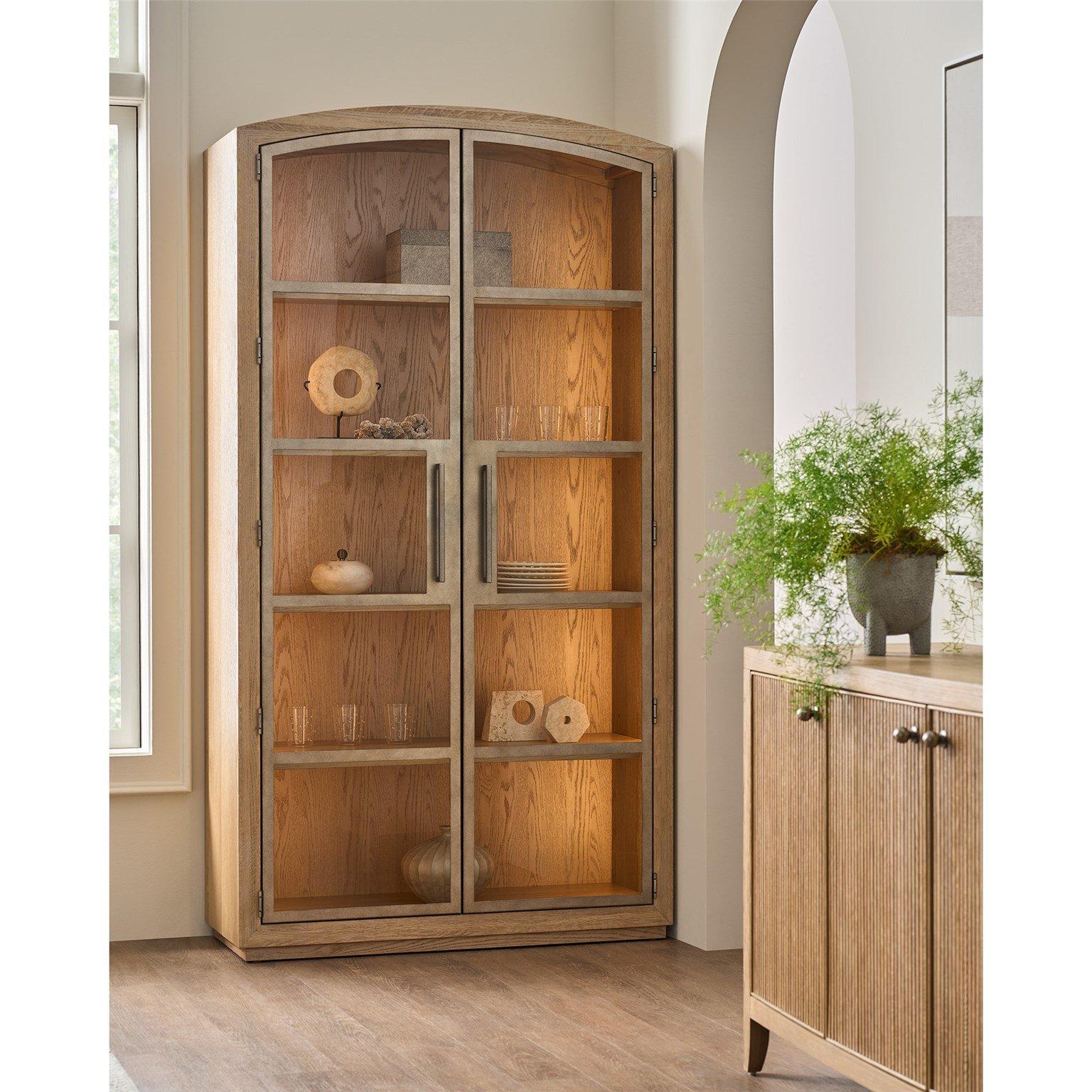 The Scribe Cabinet is a stunning piece of modern furniture. Its sleek, rounded top and minimalist silhouette create a refined aesthetic. The combination of metal doors and a wood case, illuminated by an LED light strip, adds a touch of industrial chic. The three adjustable shelves and one fixed wood shelf offer ample storage space for books, collectibles, or other cherished items.