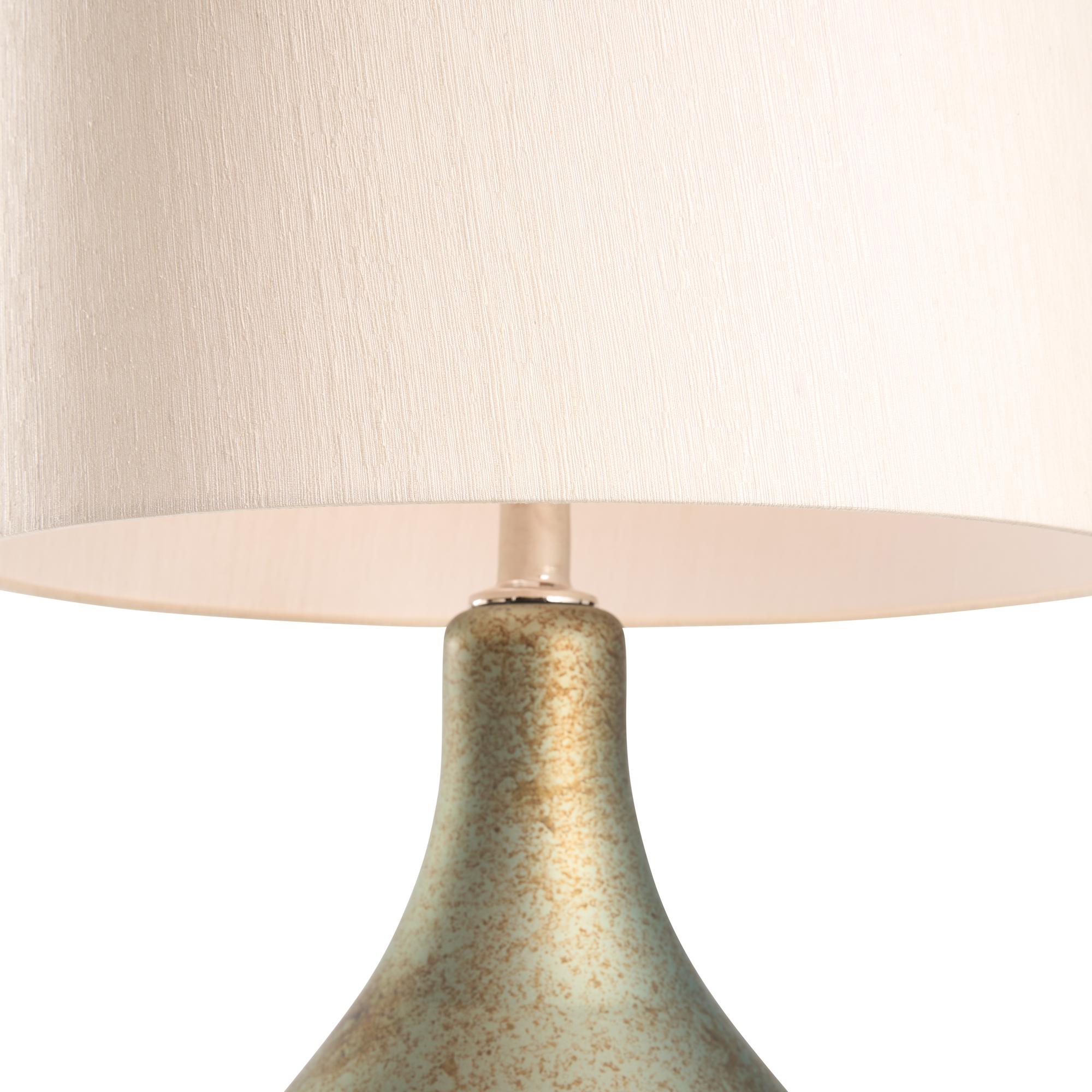 Elevate your space with the Sea Mist Lamp, a stunning piece crafted from art glass with a sophisticated matte blue-green speckled finish. This unique lamp features a softly rounded silhouette, evoking elegance and tranquility through its subtle, misty blue tones that blend effortlessly with hints of silver and earth accents. The timeless design is complemented by a classic drum shade, which diffuses light beautifully, creating a warm and inviting atmosphere. Perfect for adding an artistic touch to any room, the Sea Mist Lamp serves as both a functional light source and a statement piece in your decor.