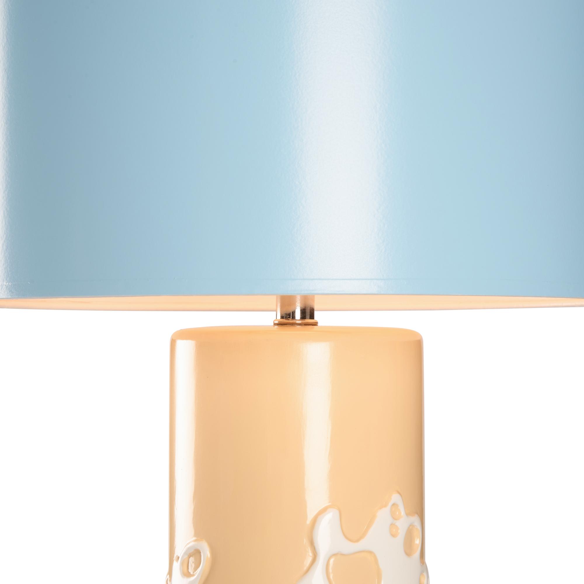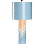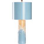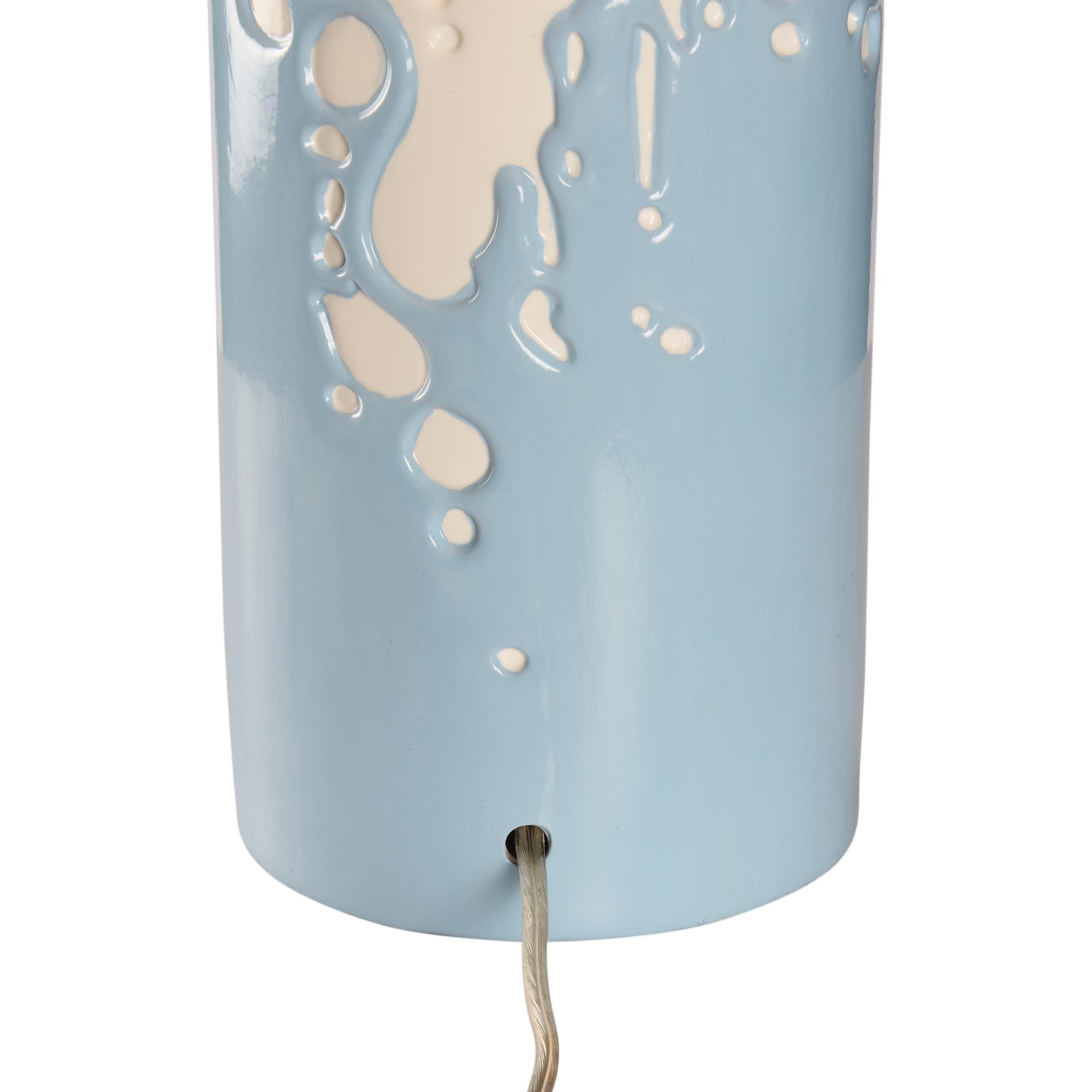This ceramic lamp captures the serene rhythm of the sea with a design inspired by ocean waves, flowing gracefully across its surface. In soothing tones of blue, tan, and white, it evokes the coastal horizon, offering a calming, beachside charm. Designed by Lisa Kahn.