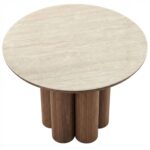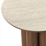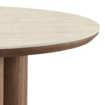 Seaton Round Dining Table, 47″ in Walnut and Travertine