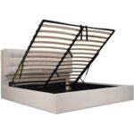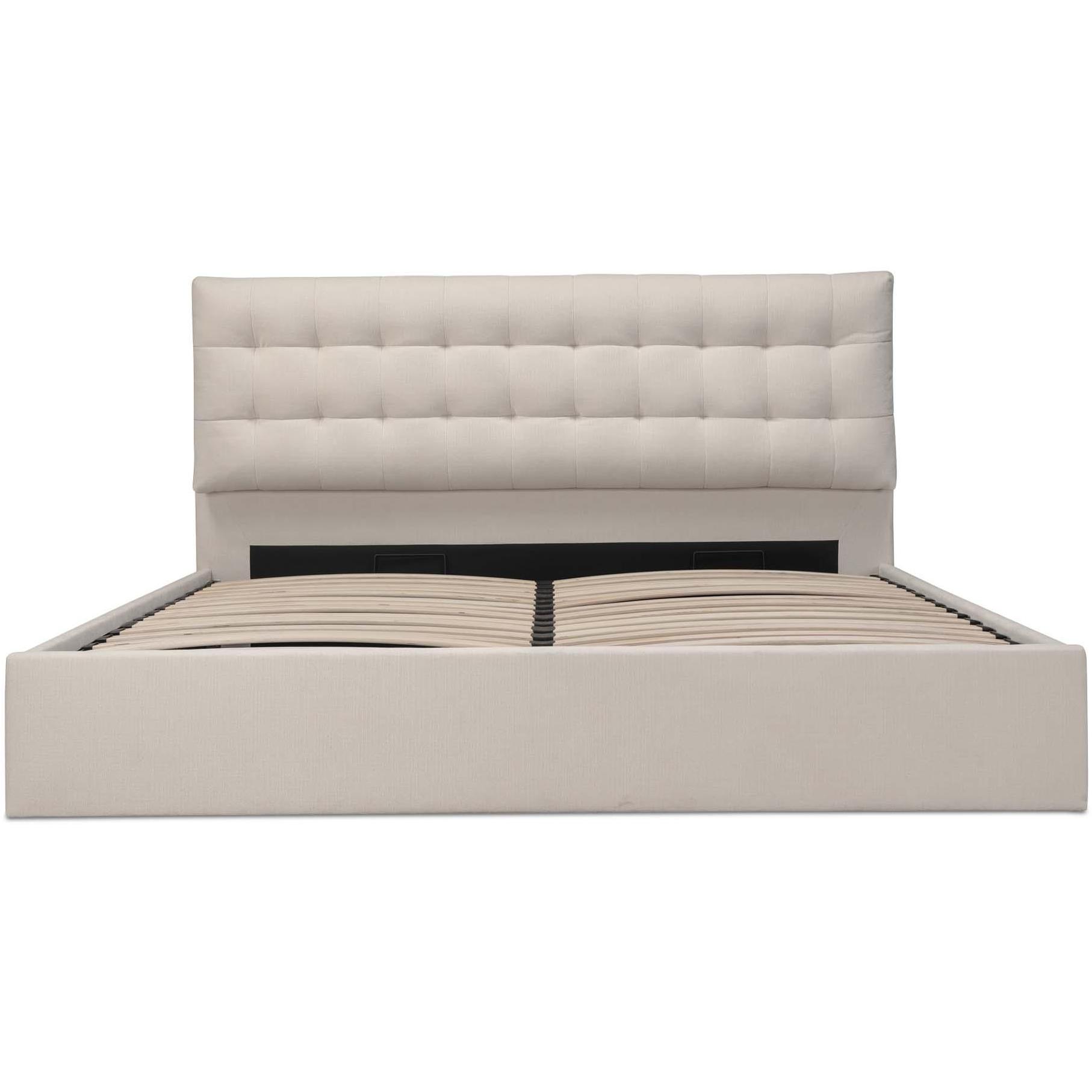 - Pillow-like double-layered headboard with tufted second layer & hydraulic lift storage