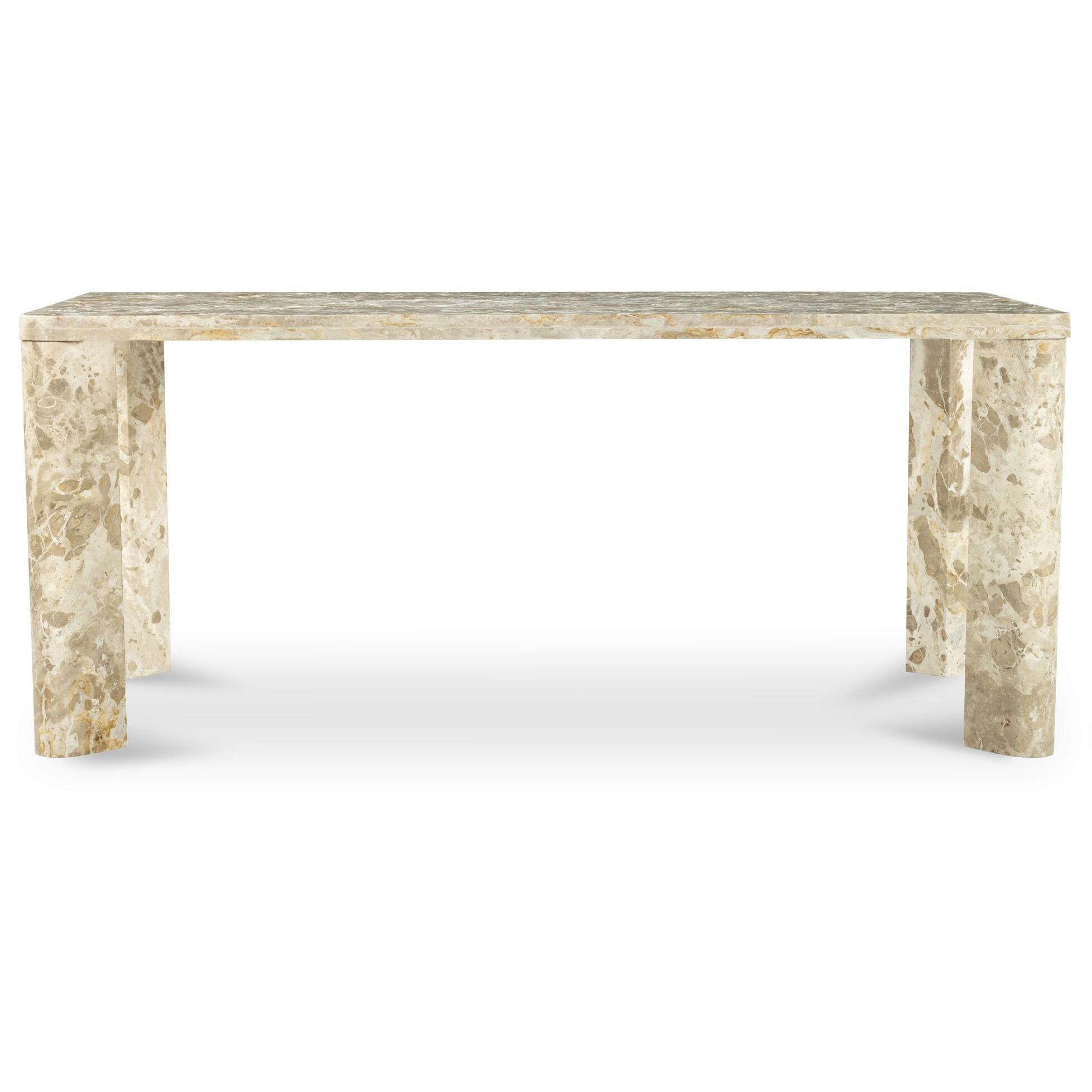 - Expressive Panther Stone Marble: This piece is crafted entirely from panther stone marble, showcasing a captivating beige and gold color scheme with unique striations throughout.