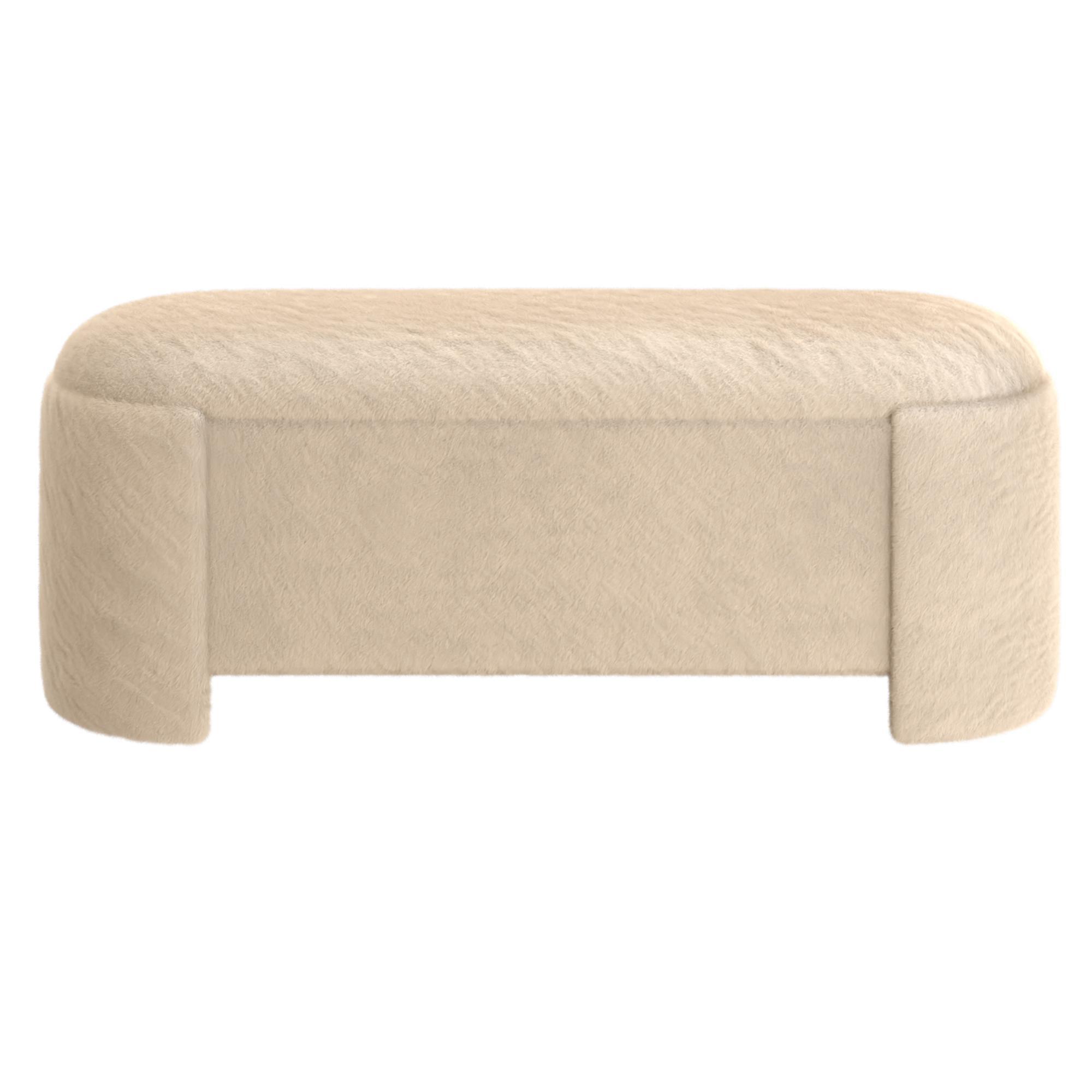 Multifunctional and just so gorgeous to look at! This fully upholstered storage ottoman is the perfect modern contemporary piece to fill your space. Whether you’re looking for a storage bench for the end of the bed, or sit-for-shoes bench in the hallway, or a comfy place to kick your feet up in the living room, this curvy beauty will satisfy all those needs. The upholstery is a soft, faux fur fabric – looks and feels luxurious!