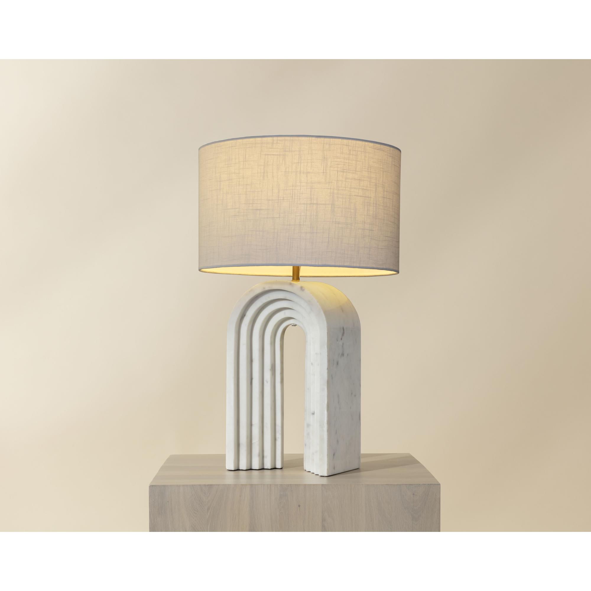 The Sensi Table Lamp’s bold composition is borne from architectural intrigue. Hand carved from white Banswara marble with pleasing arches that immerse you in the lamp’s modern contemporary design.