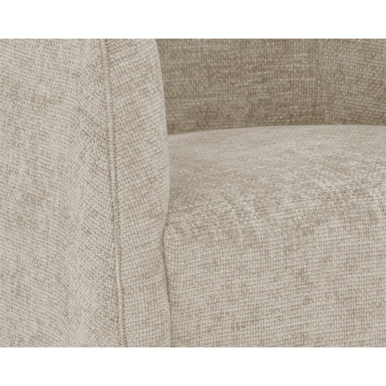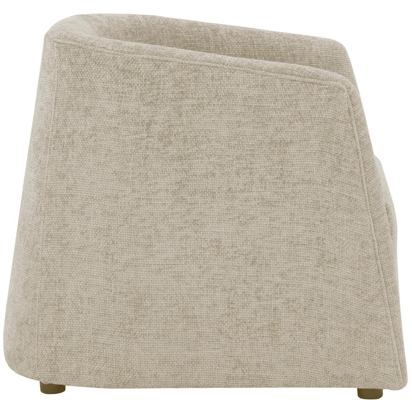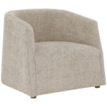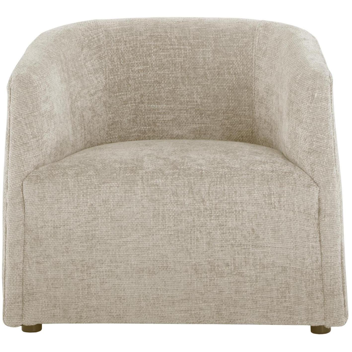 Make a statement with this fascinating lounge chair that commands attention. Features an intriguing, round shape and upholstered in husky beach fabric. Also stocked in treasure russet and gold performance fabrics.
