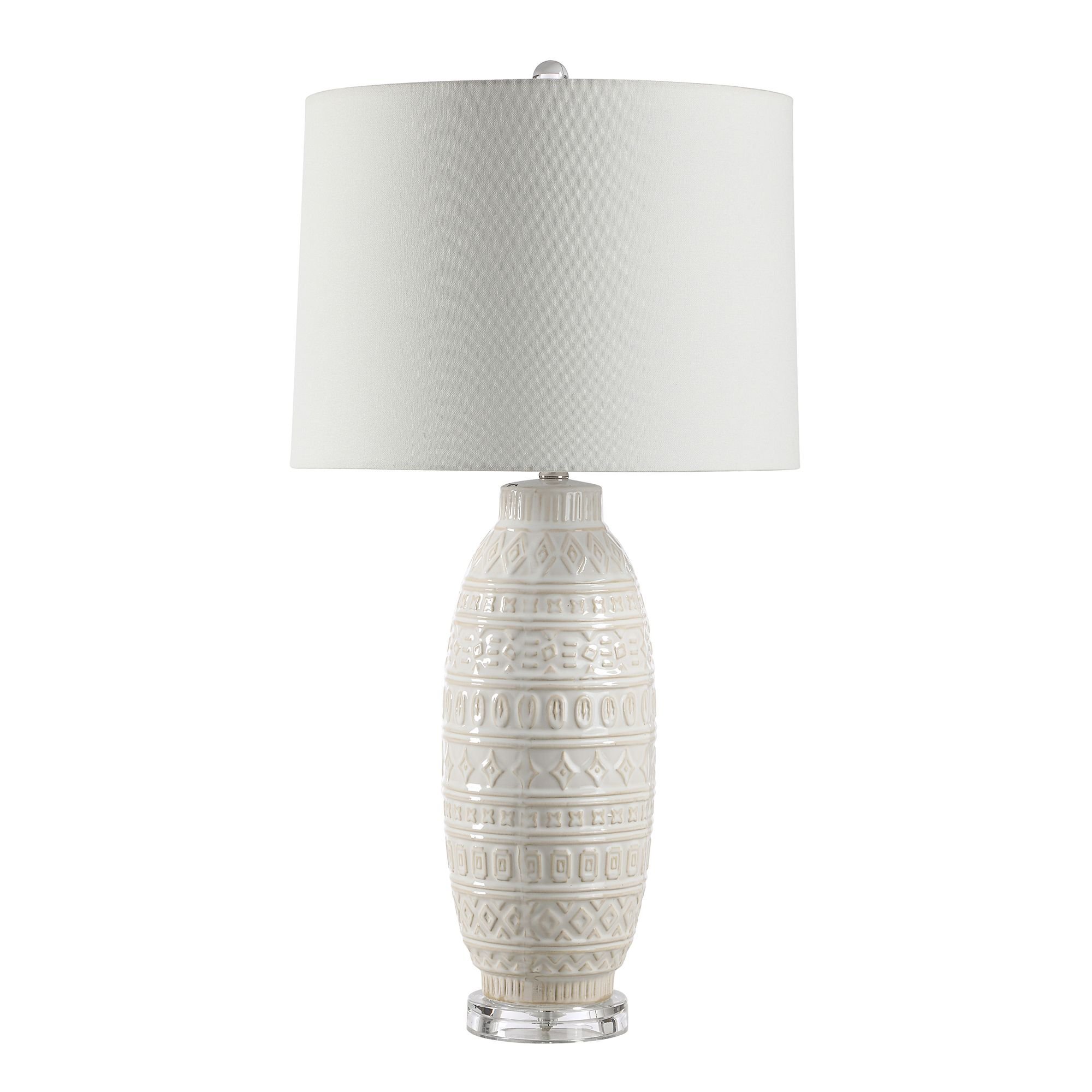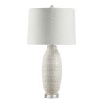 Add texture and an eye-catching element to any space with this stylish ceramic table lamp. Designed with an organic pattern and a timeless white glaze, its body is accented with clear acrylic details for a sparkling touch. Finished with an off-white light-diffusing linen shade, you’ll love the relaxed look it brings.