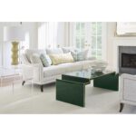 Distinctive ceramic lamp in soft glossy green on a clear acrylic base. Designed by Jamie Merida.