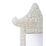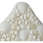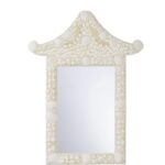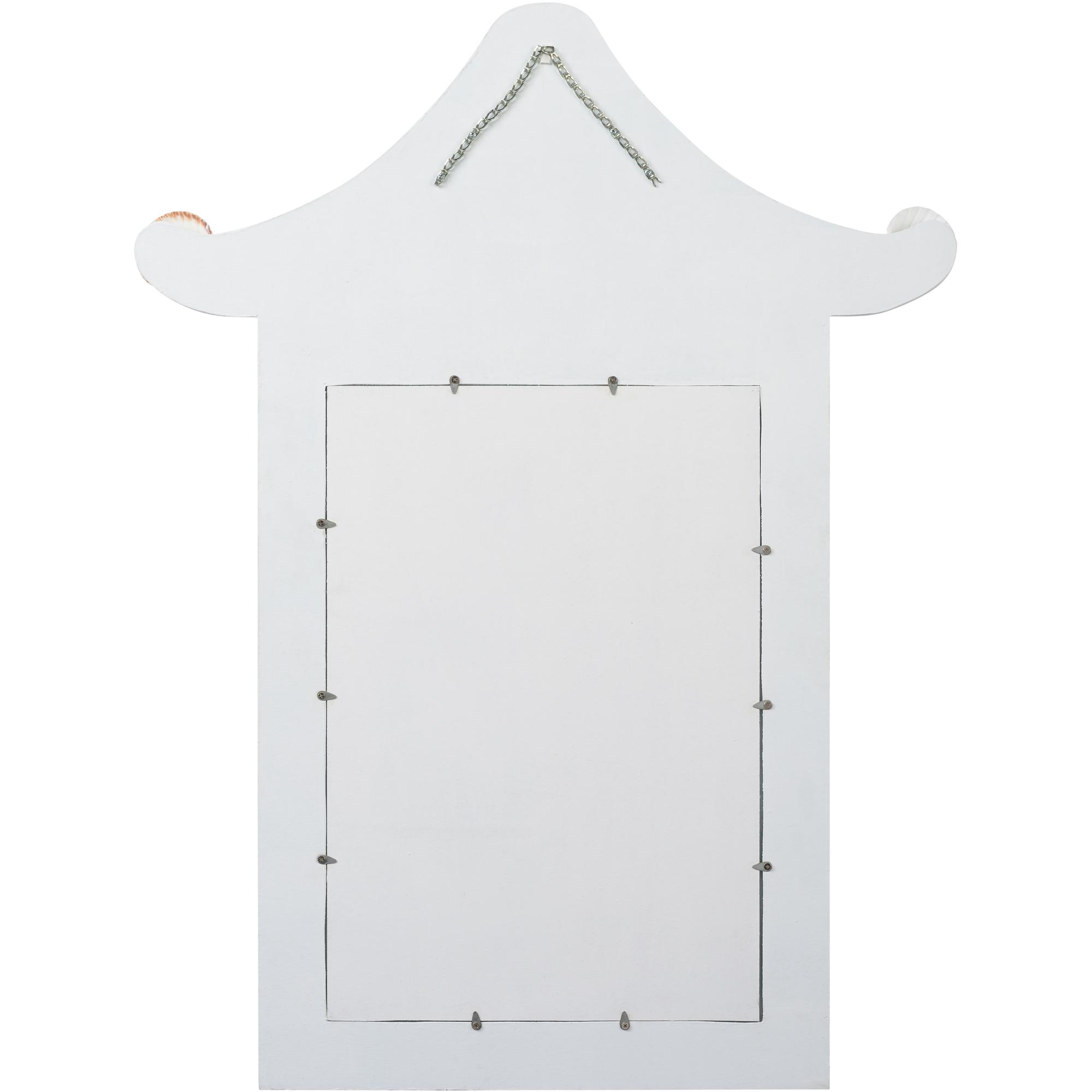 Inspired by the graceful lines of traditional pagoda architecture, this mirror is artfully constructed from natural shell, creating a luminous surface with subtle iridescence. Its tiered silhouette and intricate detailing evoke a sense of timeless elegance, blending coastal charm with classic Asian design influences.