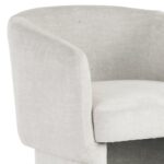 Take a seat in ultra cozy armchair and let it hug you with its softness. The round contoured shape adds to the inviting comfort factor of this chair. Soft cushioning and luxuriously soft velvet upholstery covers the entirety of this oversized accent chair. Can work well in any space as a an accent chair or for more formal seating in the living room.