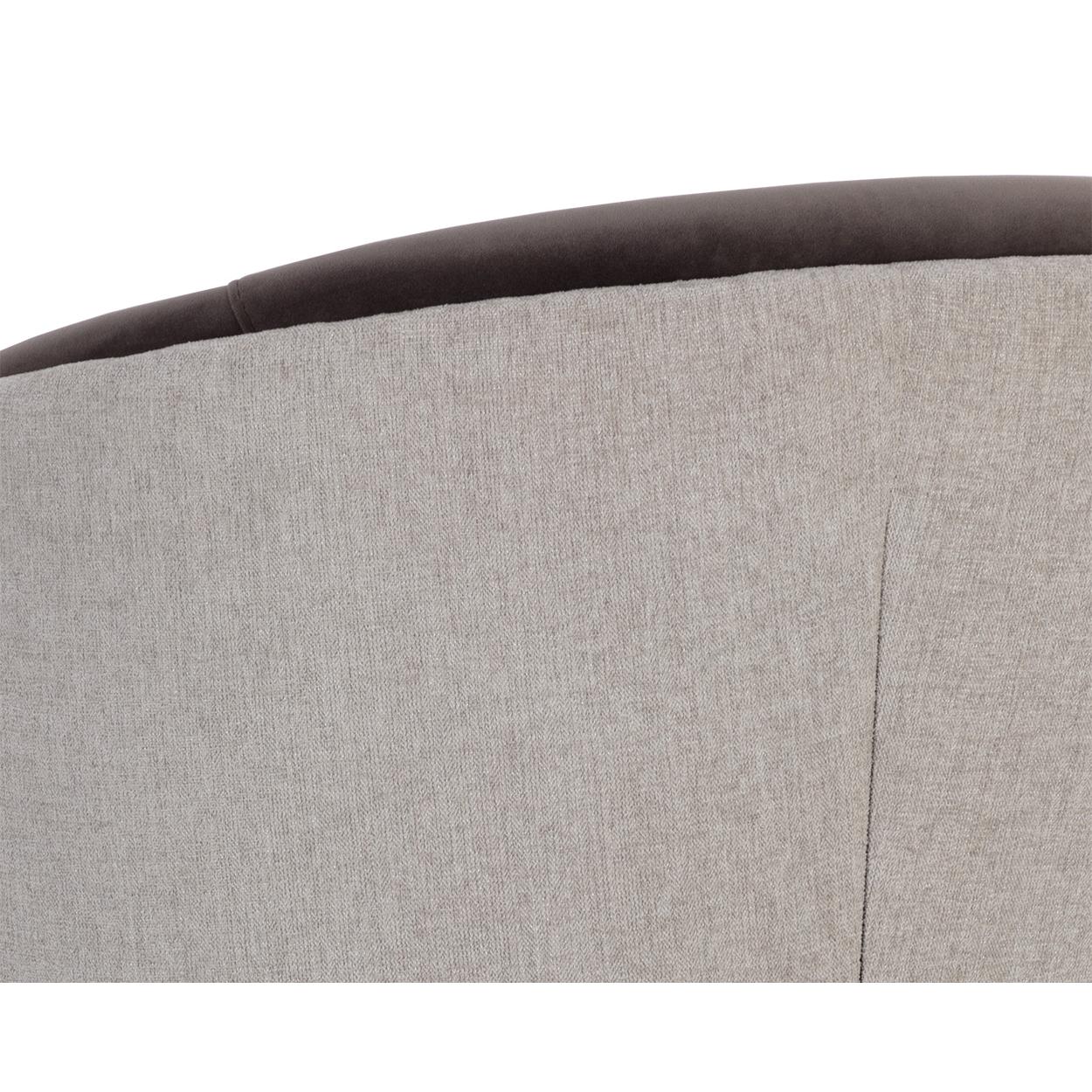 With an alluring barrel back seatback, this stunning lounge chair will add a touch of comfort to any space. Features an upholstered exterior and seat in ernst sandstone fabric, and completed with coordinating meg ash fabric on the interior seat and legs.