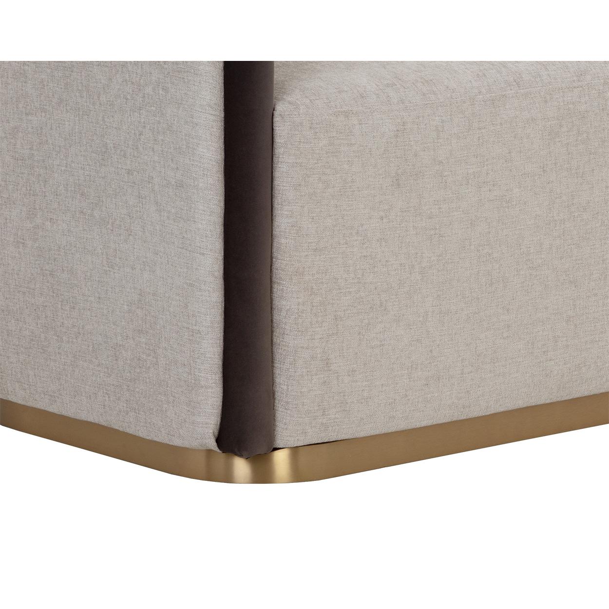 With an alluring seatback, the Sheva Sofa will add a touch of comfort to any space. Features an upholstered exterior and seat in ernst silverstone fabric, and completed with coordinating meg ash fabric on the interior seat. A powder-coated steel base provides an elegant accent to the overall look.